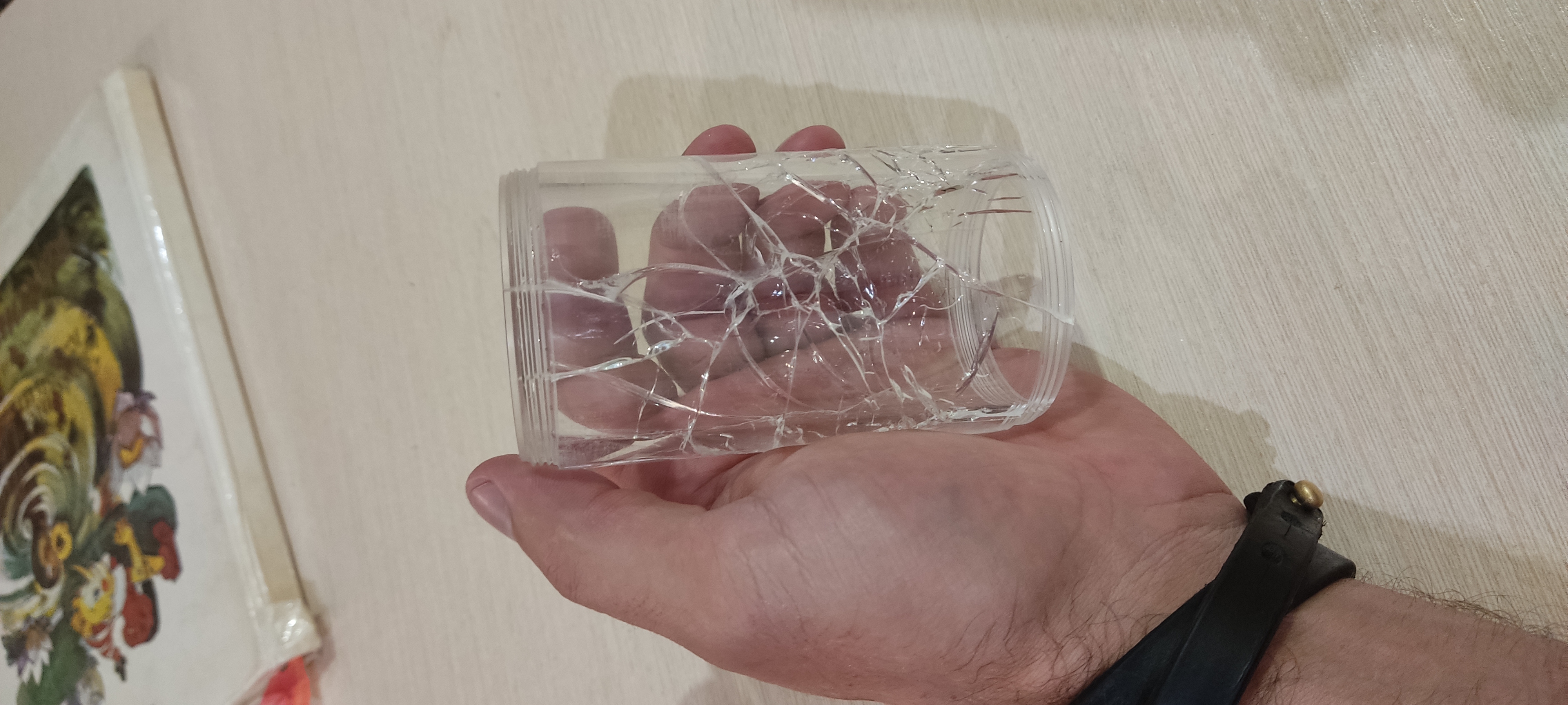 Добавлено спустя 12 минут 54 секунды: Намазал я кусок толщиной в 10 мм оргстекла. Иииии................ Ничего не произошло. Он даже матовым не стал. Когда дихлорэтан капаешь , то он хотя бы поверхность растворяет. А спирт просто испарился и все. Это ж не натрий в воду бросать. Не может химическая реакция наносить множественные внутренние сколы. Если бы твердость акрила была как у стекла , то еще можно было бы поверить в остаточные внутренние напряжения (как у перекаленого стекла при слишком быстром охлаждении) которые от нечаянного легкого удара вдруг сеткой трешин покрылось. Но акрил - пластичен. Его для получения такого эффекта надо хорошенько ударить, возможно несколько раз. Или жидким азотом помыть