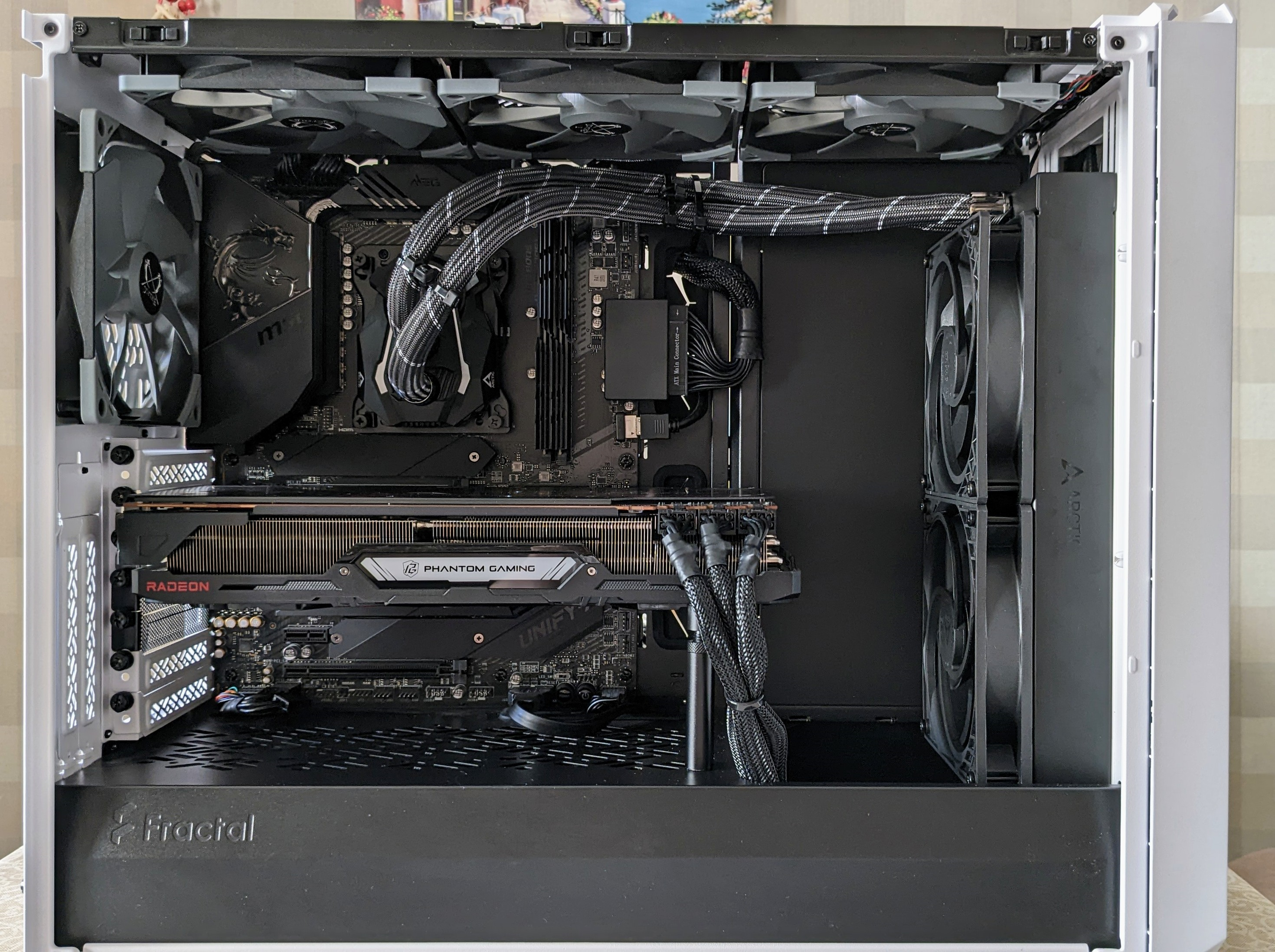 Доброго времени суток всем! Оставлю и я мини отзыв/опыт об аио ARCTIC Liquid Freezer II 280. Дошли наконец руки до установки (пару месяцев лежала без дела ). Система профильная на 5800x3D с 6800XT. Установил на Front (морду) в PULL с потоком в корпус (FD Meshy 2). Наверх естественно не встало (из спек корпуса и аио это и так понятно) из-за высокой памяти. Корпусные использую Scythe Kaze Flex 140 на 1200rpm. Фото в сборе: