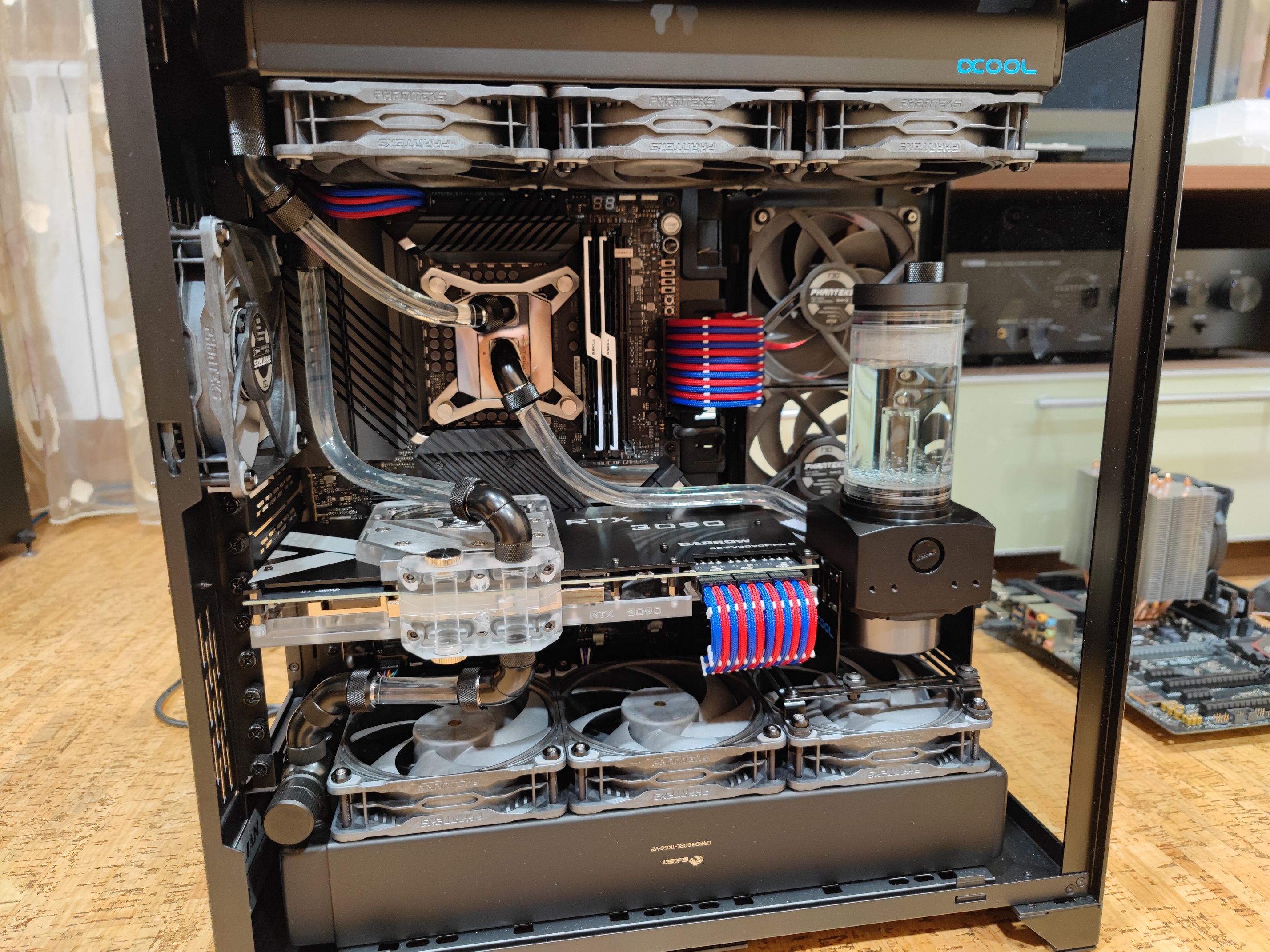 _AK_ Хм, ок. SERO91988 Да заправилось все очень шустро, понятно, что если жижа сначала в нижний рез шла бы, было бы как-то поинтересней Журчать перестало минут через 10 и некоторых кульбитов. Но не, в этом корпусе иного, более оптимального, пути не прикинуть, или спереди торчала бы уйма шлангов, что есть неэстетично. С т.з резистивности контура в целом, полагаю, она одинакова, т.к. расположение компонентов не поменялось бы, пробить помпе один фиг пришлось бы одинаковую высоту. Заправить через верх сразу не догадался, потом, конечно, после драки кулаками махать не смог. В итоге, просто откручу заглушки, посмотрю уровень, "открыв" рез, так? Или тогда вода начнет давить в рез, опустошая верхний рад? Тогда рез не открывать? Верхняя точка (рад) же выше расширителя...