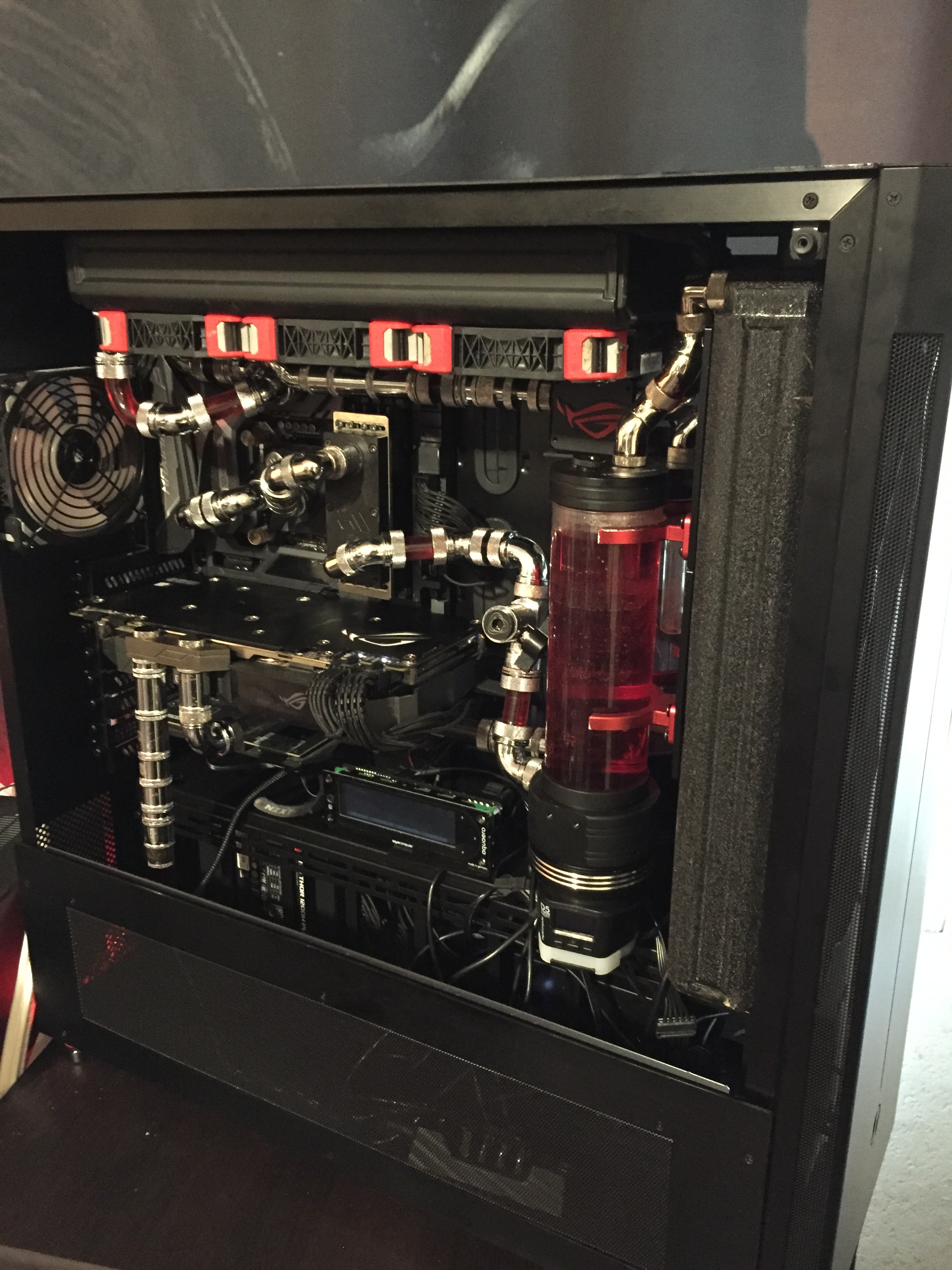 корпус бомба...очень тихо..есть кронштейн под видеокарту..Удобные салазки для радиаторов много местa..Теперь у меня жижа вообще не поднимается выше 28 градусов(я еще нанес жм на крышку проца под вб)...осталось дождаться радиатора на 480 и доделать уже видео...пока работаю на корпусом работы не почат и край еще.Жаль резервуары от sc не влезли....Пока старые воткнул.