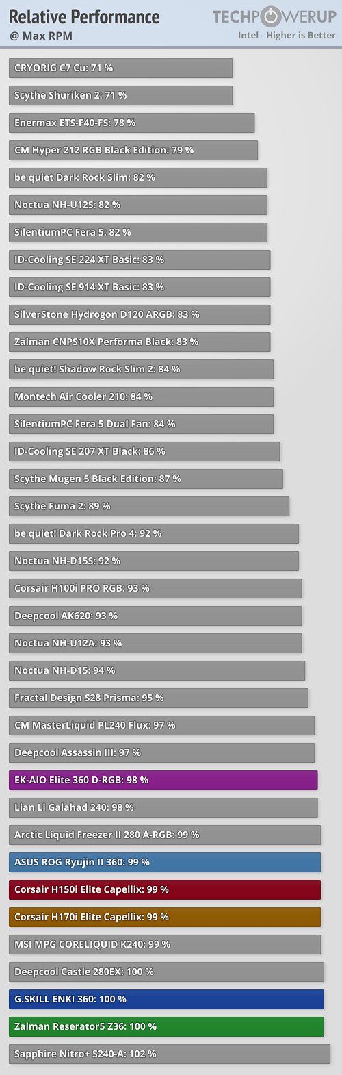 Ну так они тестируют на открытом стенде, без подогрева видеокартой. К тому-же у них предел 200вт по процессору. Как раз тот момент когда D15 уже на грани, но пока тянет, а 360е водянки еще не раскрылись полностью. Вот эти тесты по моему намного лучше https://www.ixbt.com/cpu/coolers/liquid-i9-7980xe.html