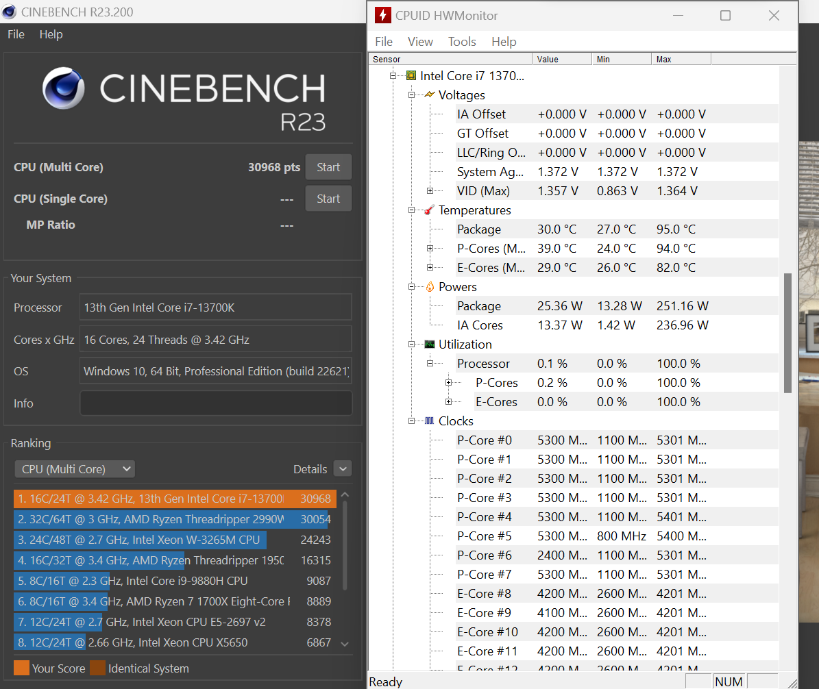 Ну вот и попробуйте с прямыми руками и отпишитесь о результатах на 13700к при 250вт.