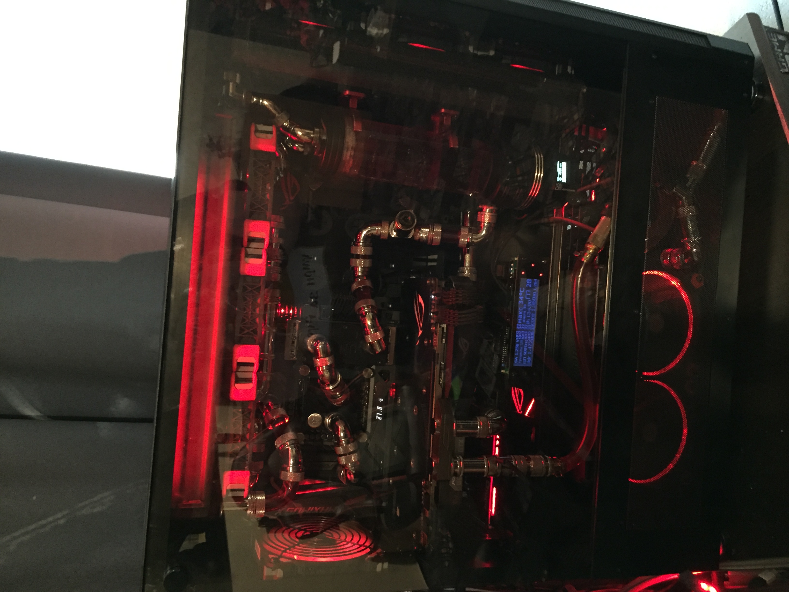 у меня на контур для проца теперь два радиатора по 360 охлаждают врм память и проц собсна.(а с новым радиком площадь рассеивания тепла будет больше чем у mora)Это дает меньший прирост температуры жижи во время игровой сессии и еще я уменьшил обороты вентилей до 900-1000 с 1200-1500.ну и это дает еще запас по разгону буду пробовать 5100 на постоянку перегрева думаю не будет)).Так что вопрос очень как по мне очень странноватый.К тому же зачем мне пихать вниз 360 если туда 480 влазит?я пущу вниз на видеокарту 480мм радиатор и посмотрим как будет нагрев жижи происходить.))Кстати да для топовых видеокарт тяжелых, что бы не провисали ,в корпусе очень классное решение сделано в виде регулируемых подставок.Ну и каленое стекло лучше по виду чем оргстекло)).На фото ВРЕМЕННЫЙ!! билд который пробудет около месяца пока не приедут резы и радиатор .