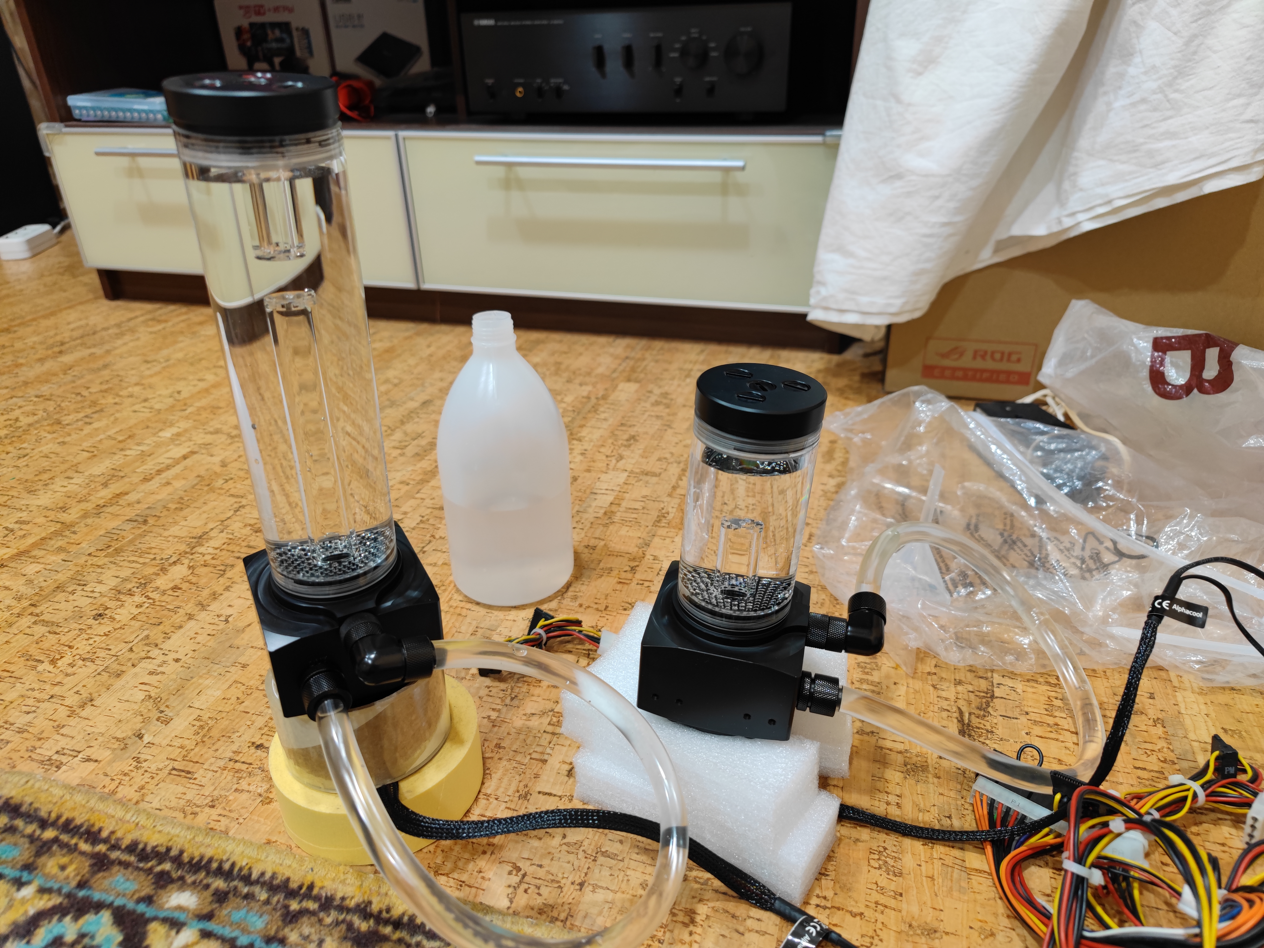 Fonzy А идеология сборки, простите, какая? Если системник это микро кубик, то я бы вообще не заморачивался, эффективность СЖО все равно будет около плинтуса. Поставил бы только водоблоки, развел шланги покомпактнее, чтобы доступ сохранить, а все остальное выкинул наружу в незаметную нишу со сквознячком. Мобильность, конечно, будет помножена на ноль, но если такой цели нет, то и не страшно.