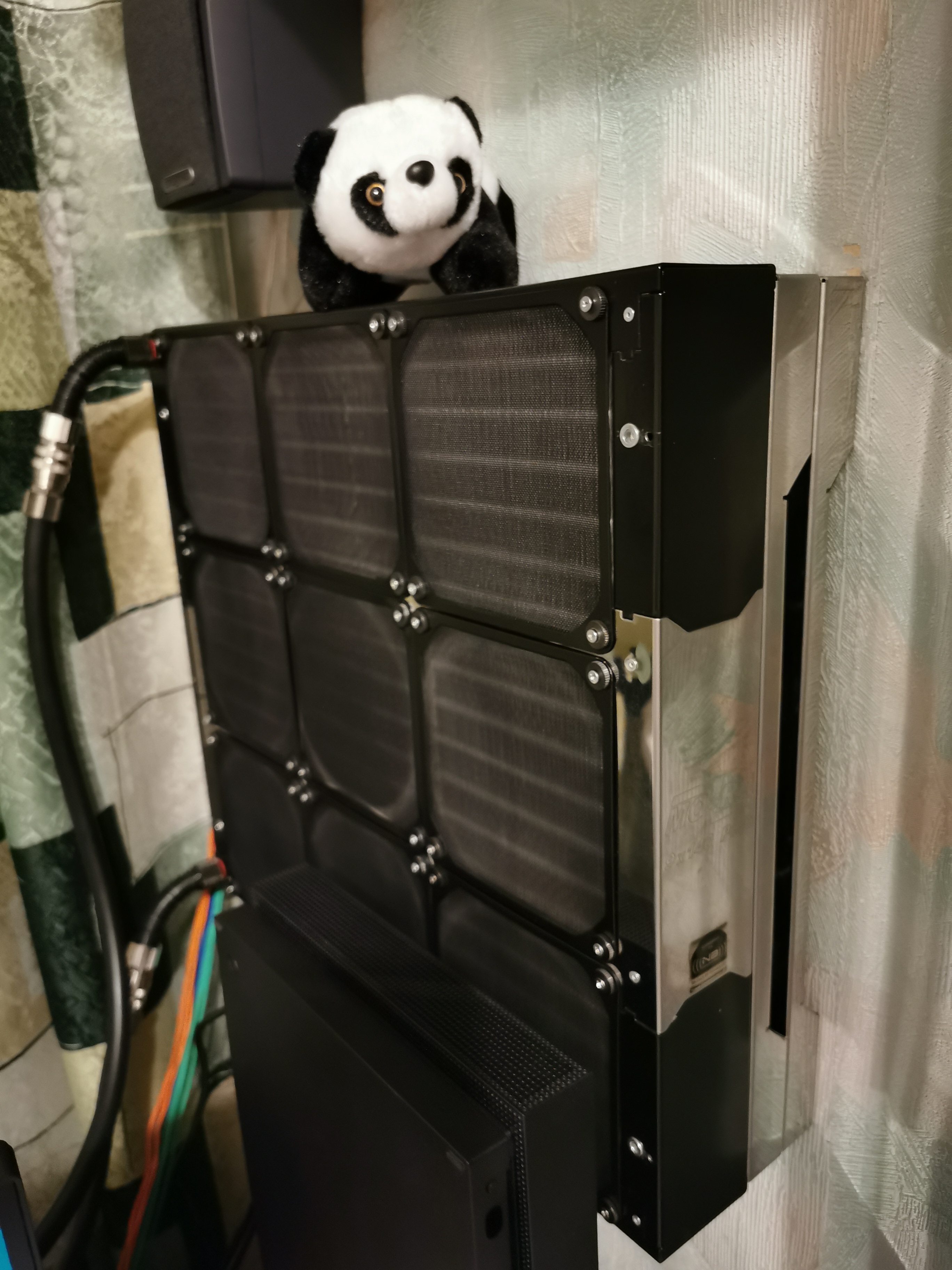 и винтов 10мм х3 36 шт, шайбы накрученные на винты из комплекта профильных вентиляторов Noiseblocker NB-BlackSilentPro PK-3 140mm x 25mm Ultra Quiet Fan - 1700 RPM Это вариант когда вентиляторы стоят между мора и стеной. А вот предыдущий вариант