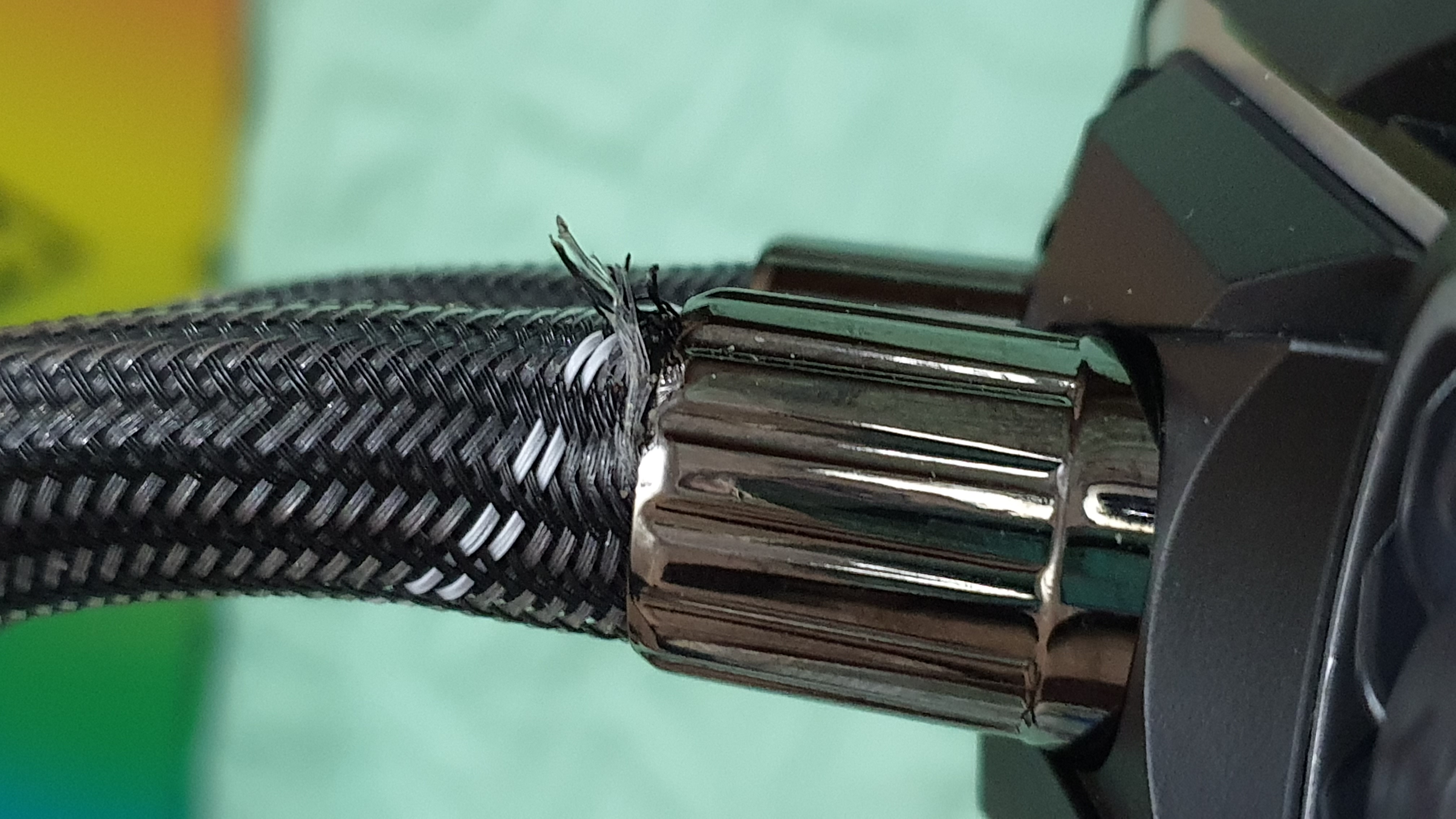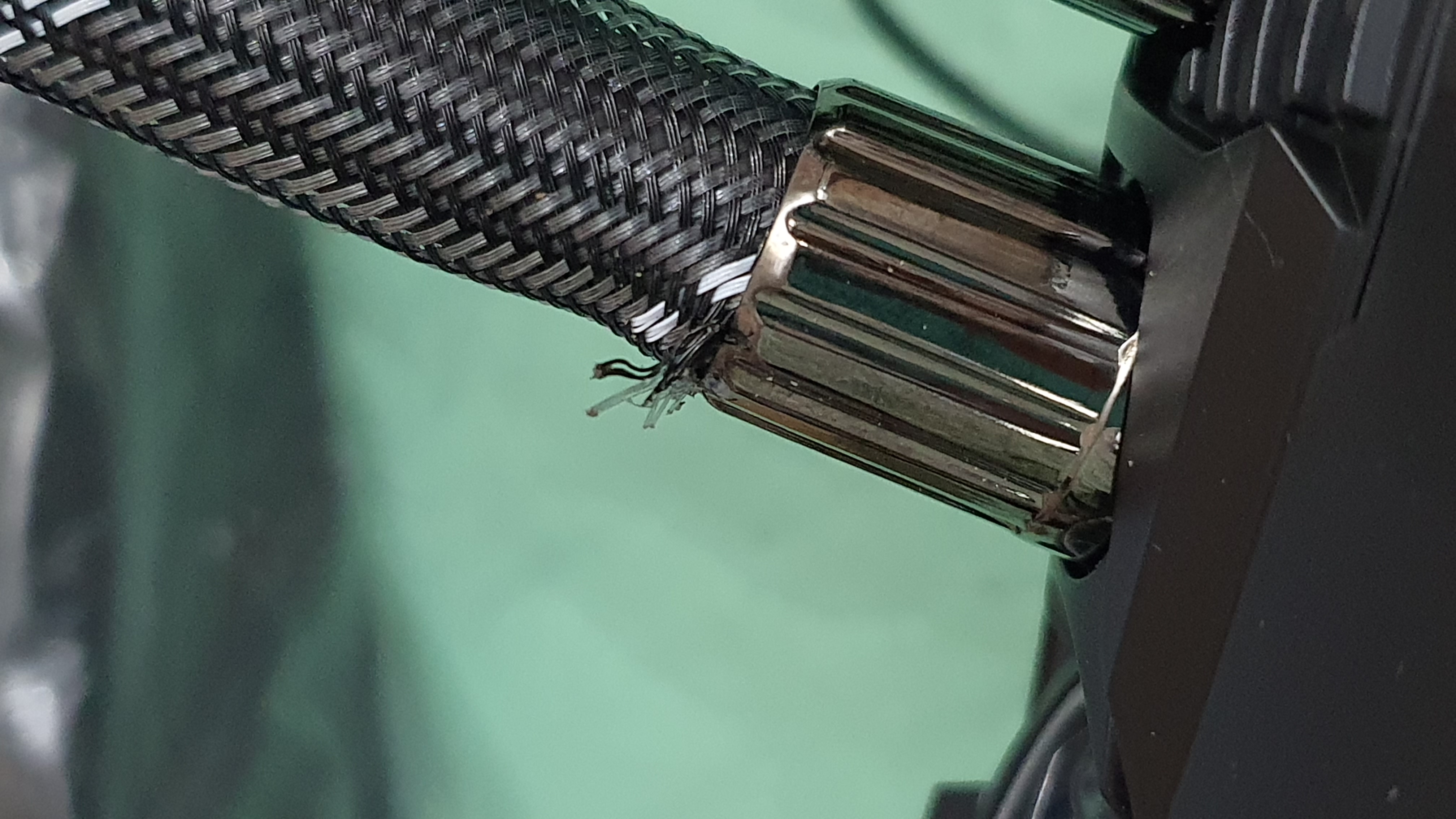 Оплётка ни на что, кроме эстетики не влияет, трубка там толстая и такой ерундой её не пережать. Возьми зубочистку и заправь оплётку под кожух.