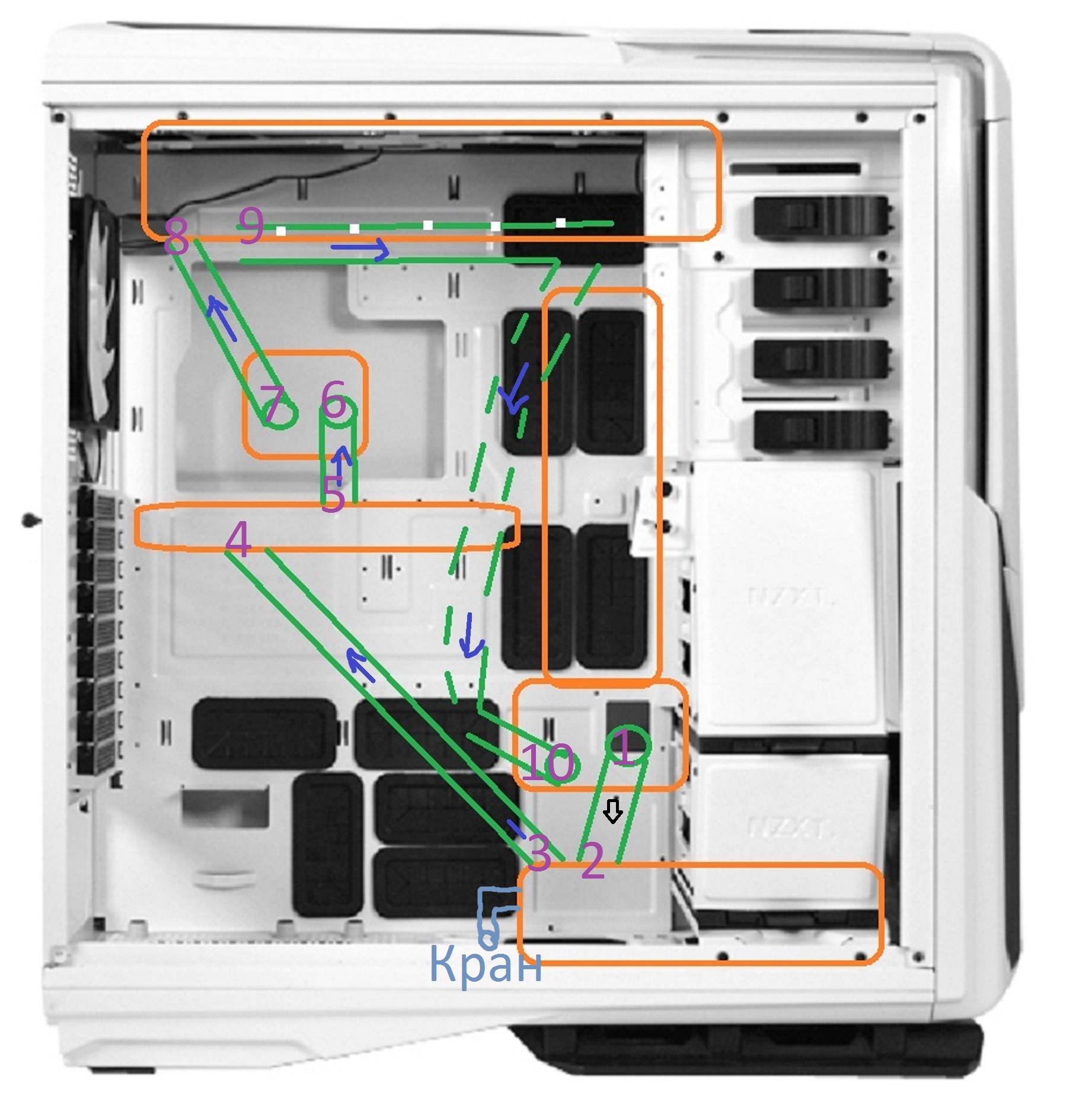 look Проц - видео зачем 45, можно прямой, тк шланг сам создаст плавный поворот. В. радиатор прямой - проц 45гр Видео - н. радиатор. Прямой - 90 гр радик н. радиатор 90гр- если отверстия на помпе на лице, 90 гр и лучше поворотный под 90 гр., если слева сбоку то прямой помпа (отверстия слева сб. ) 90 гр идем вверх прямой фитинг - переходник тройник кругляшка - прямой - в радиатор 90 гр. #77 справа сверху узел. Если на лице тоже 90гр.