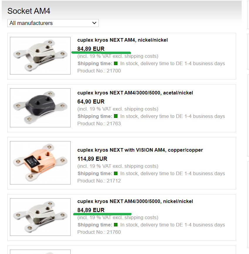 Ничего бесплатно не докладывают. Ты волен при покупке ватера выбрать исходный вариант по душе) Нужен другой крепеж, вэлкам в кассу. Кто имеет ватер с крепежом без смещения, может заказать отдельно Retrofit kit socket AM4/3000/5000 for cuplex kryos NEXT за 12,52 евро без НДС и стоимости доставки.