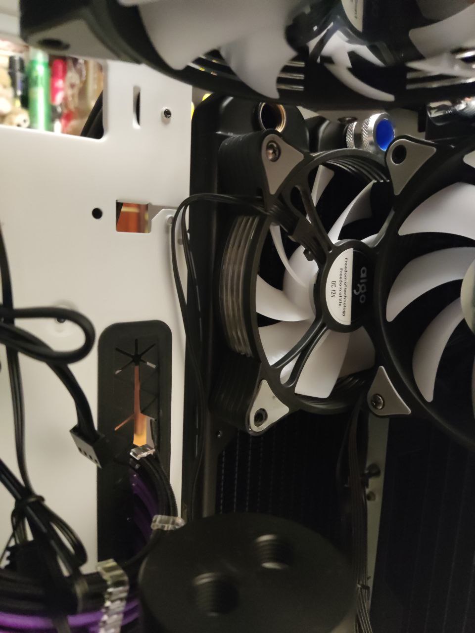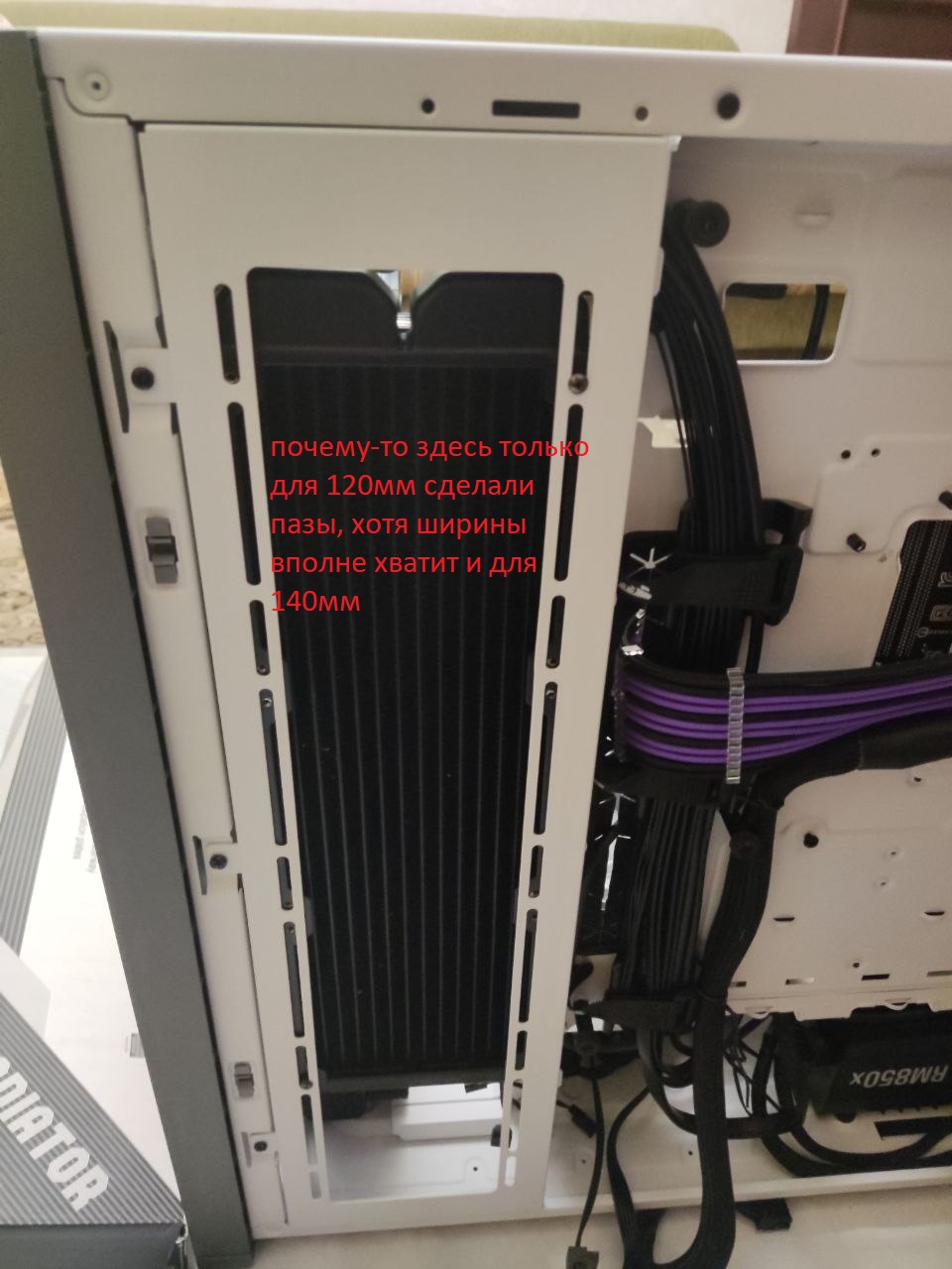 Да у меня такой же корпус. Только черный. Когда забирал его тоже огромным показался, но как начал собирать то не таким уж большим он и оказался. Верх 420, бок 360. Оба по 45. Ватер на 3080Ти приедет буду глядеть че да как. Если все печально будет, то буду думать куда еще один воткнуть.