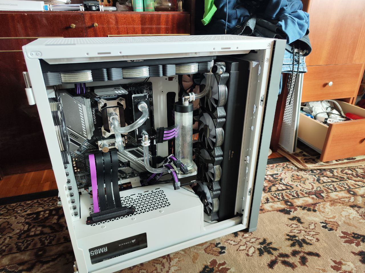 В общем купил себе thermaltake водянку, через пол года начались скачки температуры, потом загудела помпа, сразу же все снял, разобрал. В итоге в жидкости куча белых хлопьев и комков, жижа мутная желтая. Помпа без люфтов, крутится плавно и четко, но вся ситсема в говне, медная пластина с ребрами полностью была забита белыми соплями, как буд то китаец при сборке передернул на нее и нечаянно спустил в жидкость которой заправлял. Сейчас нахожусь на этапе чем прочистить радик, он алюминиевый, с медными ребрами. Я прикупил теплоноситель для систем отопления на пропиленглеколи с присадками от коррозии, написано что подходит как для алюмишки так и для меди. Пока не тестил, втак как не знаю чем промыть алюмишку, советовали большим шприцем прогнать дестилят по радику вместе с фейри, хотел бы узнать идея рабочая? Хлопья и сопли похожи на органические выделегия, без запаха, но мерзкая херня.