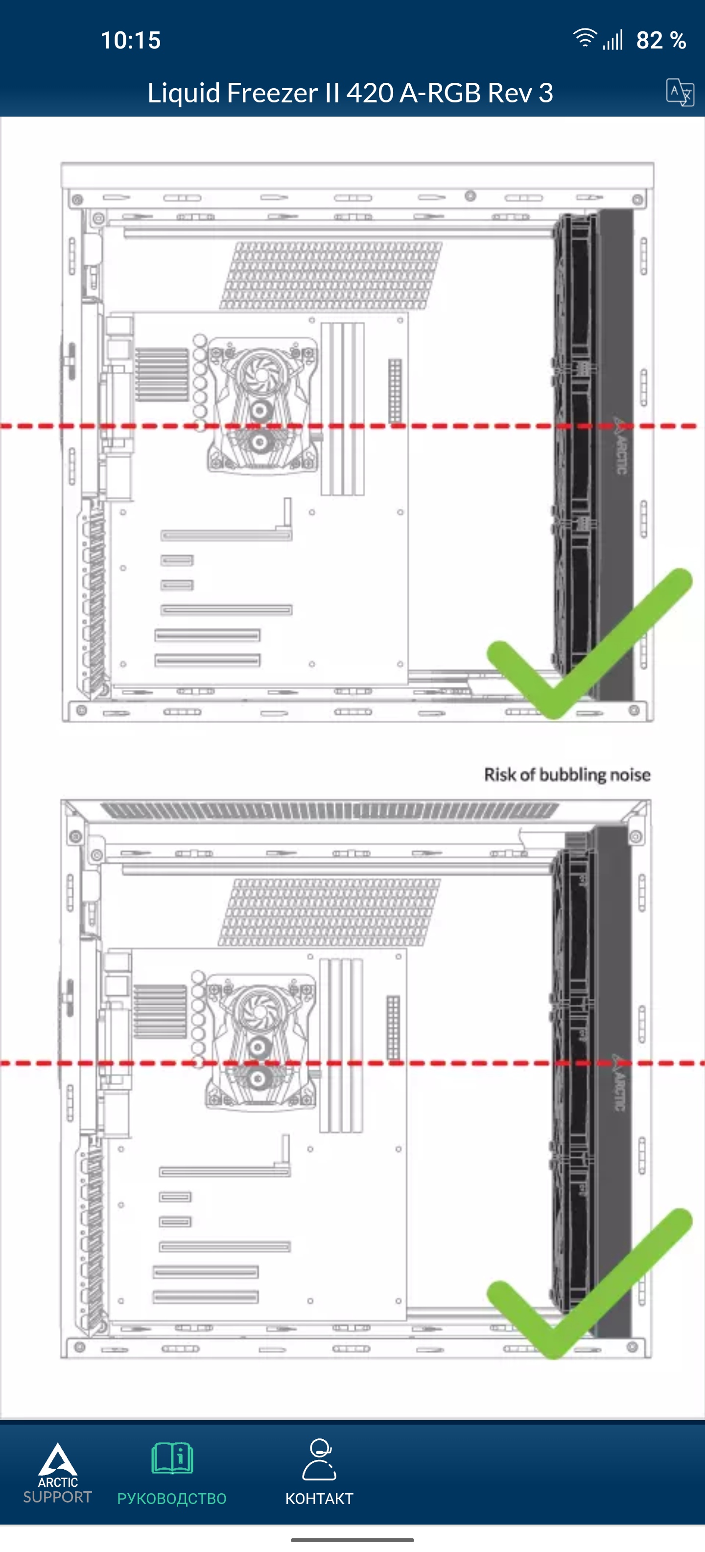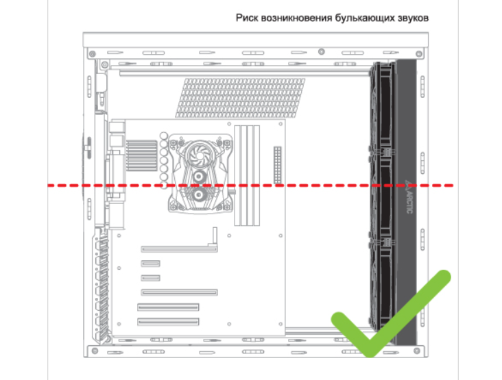За два года владения ARCTIC LIQUID FREEZER II 360, установленной вверх шлангами на морду DEEPCOOL MATREXX 55 MESH, бульканье слышал только при первом запуске СЖО и каждый после чистки радиатора, т.к. вертишь его во все стороны.