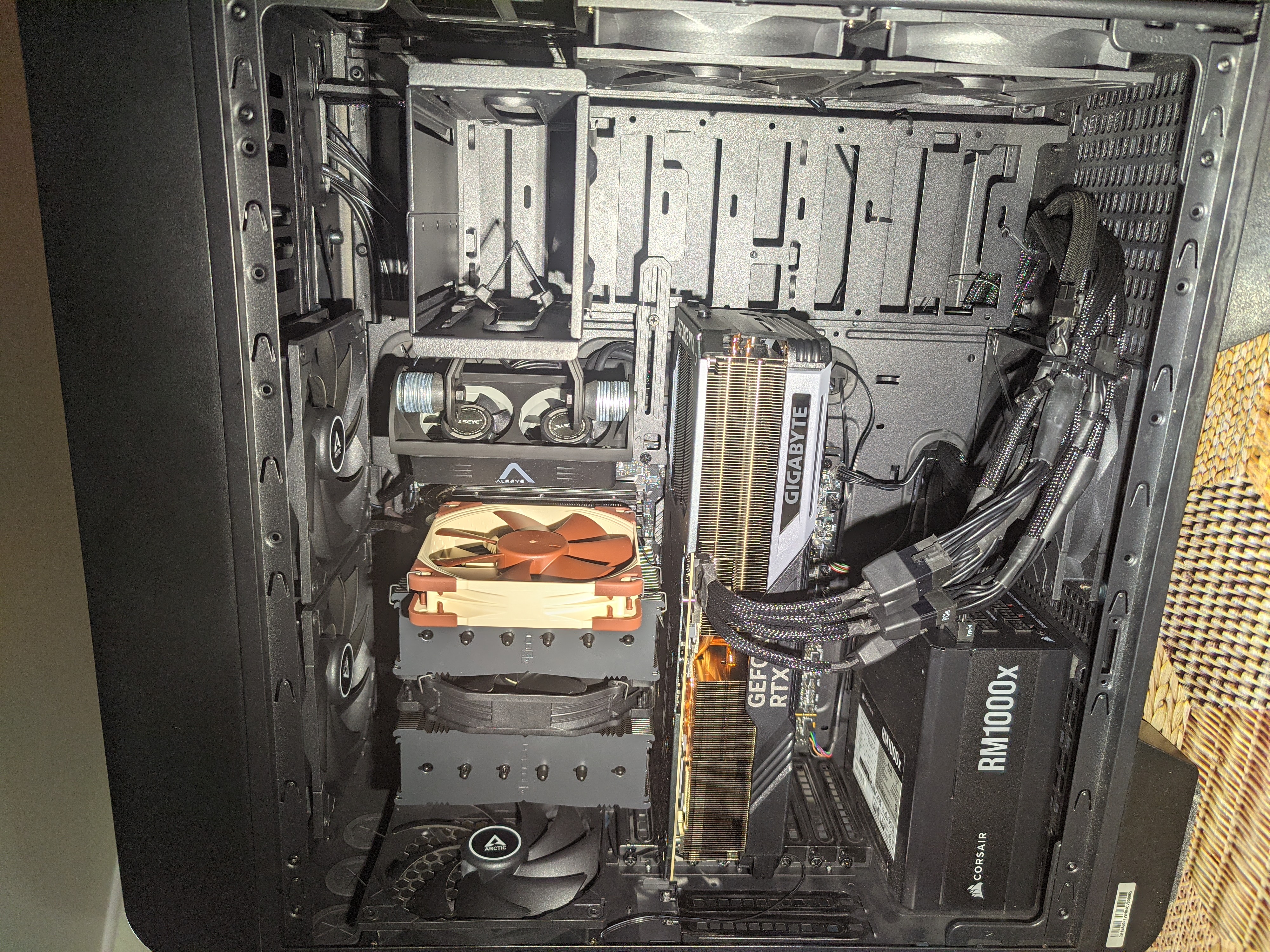 да пуш пулл толку почти никакого не дает, точно так-же как вешать третий винтель на D15. в лучшим случае максимум пара градусов а шума и возможный вибрации и резонанса получить шансы прибавляются. габариты у 4090 конечно лютейшие. каждый раз когда смотрю на системники с этими карта удивляютс ее размерами, даже моя Rog 3080Ti кажется карликом.