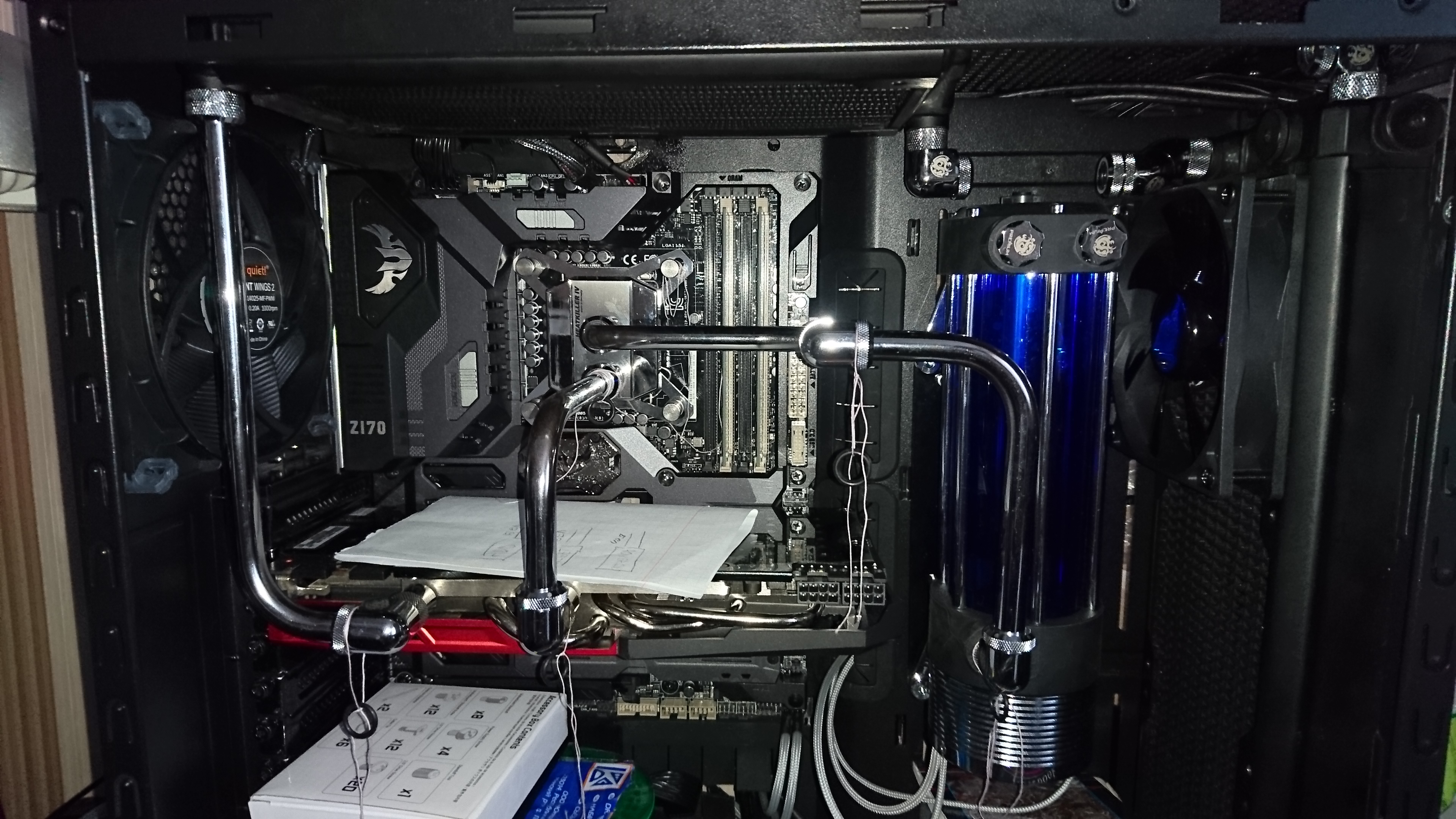 После сборки контура СЖО нужно обязательно проверить его на течи: обмотать места соединений бумажными полотенцами или салфетками, заправить, запустить в тестовом режиме (запустить только помпу от отдельного БП), достаточным временем проверки можно считать 12-24 часа. Если кто-то желает добавить что-либо - пишите в ЛС куратору темы.