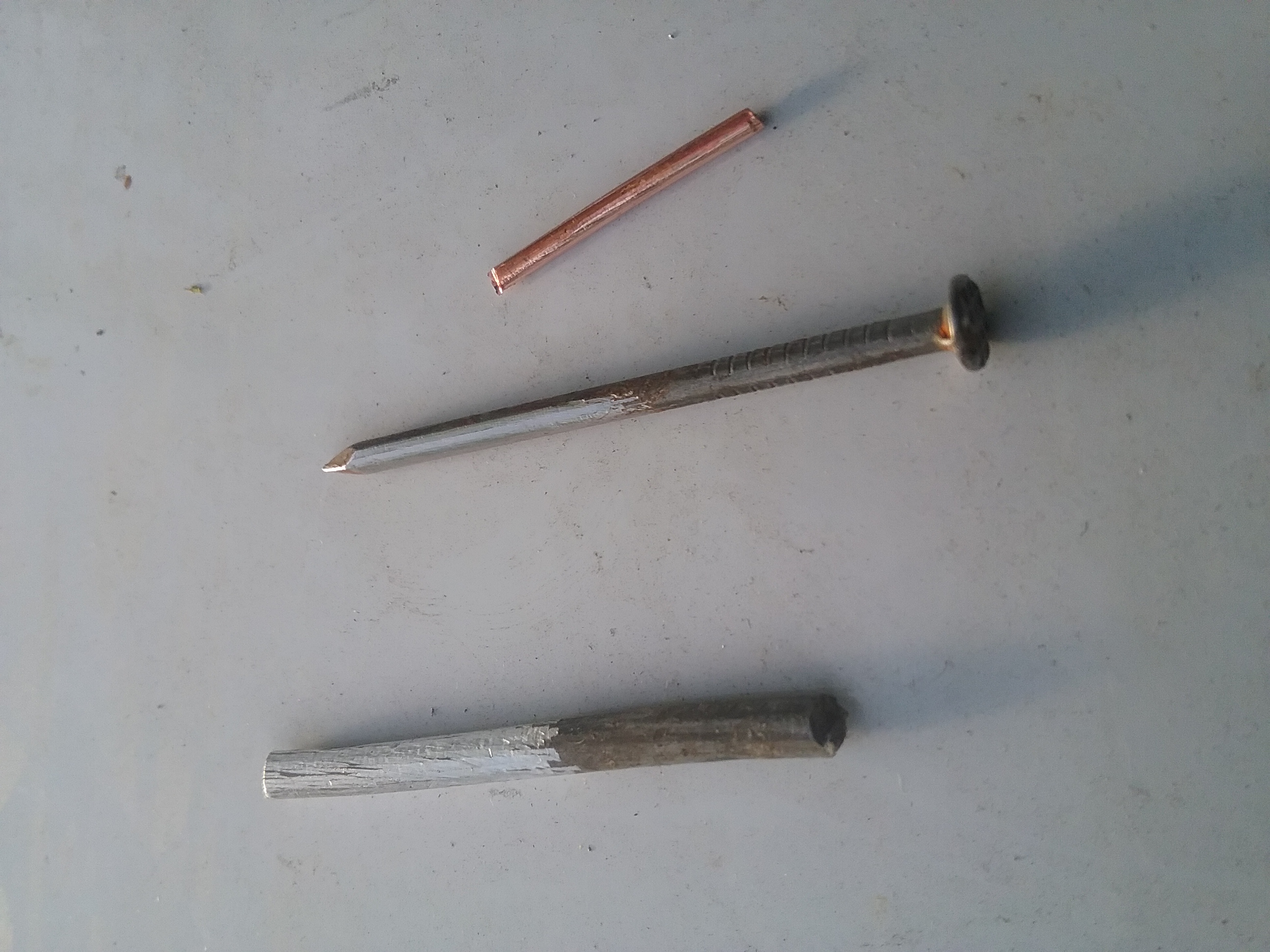 Через две недели посмотрел что стало с образцами от воздействия "супер " четвертичного амония... ранее есть пост... концентрация 100% ... что видно ....гвозь не ржавеет...от слова совсем... медь чуть помутнела... а вот алюминий полный алес... травит на ура с кратерами.....