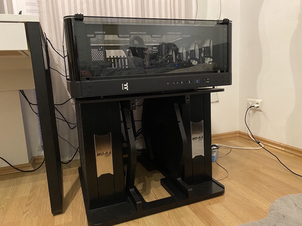 А насчет внешнего радиатора, нет у меня под него место вот вам фото расположения пк, куда тут внешку ставить или мору??? Вот по этому приходится выкручиваться в тех лимитах что есть с водой внутри.