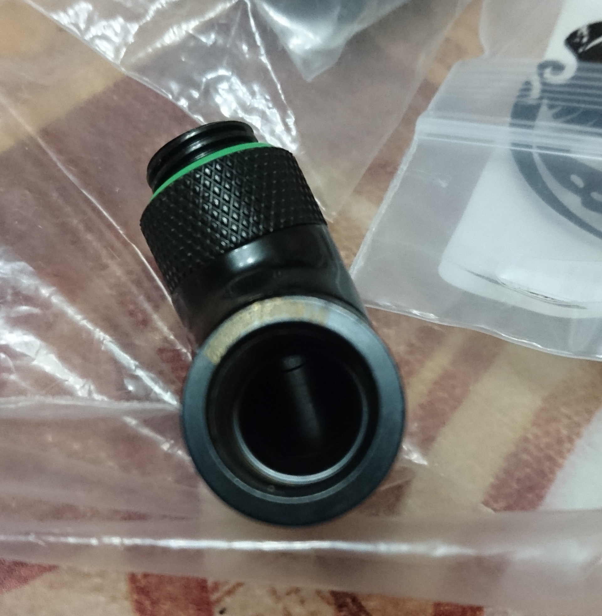 У меня все угловые соединения состоят из 45+45 фитов. Одно такое начало "сопливить". Решил с алика попробовать BARROW заказать, не из за экономии, лень было в магазы по пробкам из за фитов тащиться. Заказал два типа 45 и один тип 90 плавный