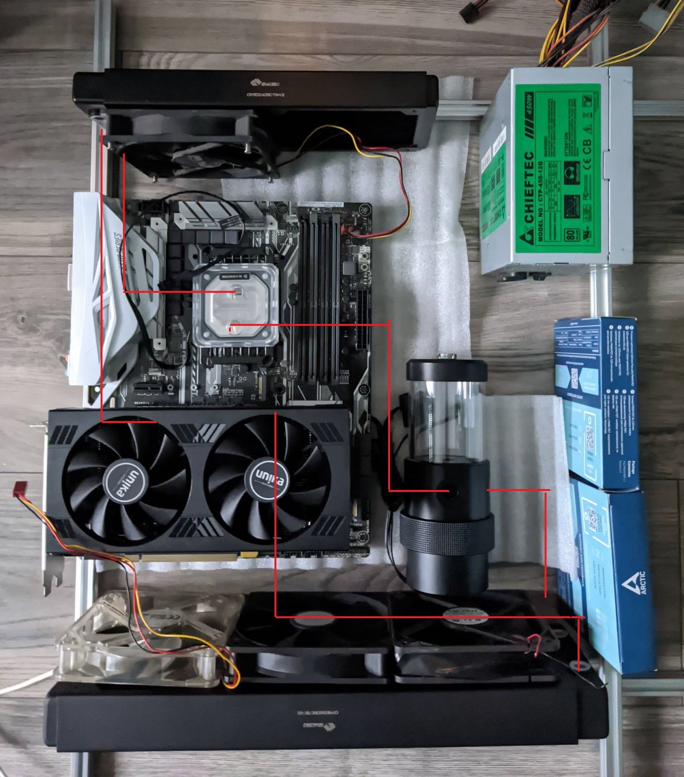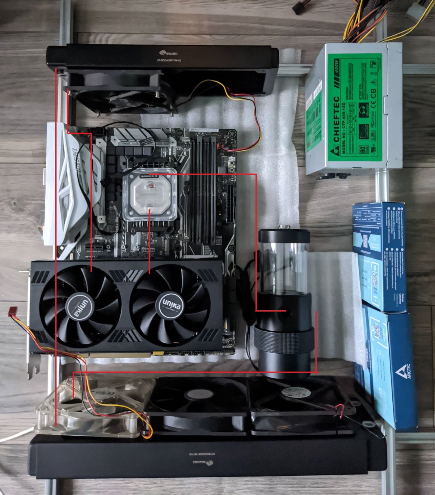 SERO91988, qefir Спасибо за помощь! Радиатор наверно портами справа оставлю, а то смотрю как у CHiCHo, можно на углових адаптерах обанкротится) Да и вход в помпу удобней делать.