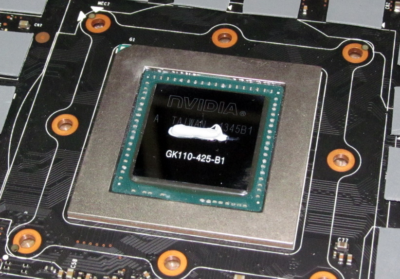 "Собственно сабж": Zotac GTX 780Ti OC с нереференсным малошумным охладом. Сразу же в данном охладе не понравились температуры VRM и памяти - 88°, что в сравнении с референсом мягко говоря, не очень. Поставил вместо радиатора ГП универсальный ватер EK-VGA Supreme HF (собственно, с расчётом на его установку выбор ВК с индивидуальными радиаторами памяти и питалова и был сделан), установил снизу тихоходную стодвадцатку и с радостным предчувствием измерил температуры под нагрузкой. Раскатал губу, называется: на питальнике снизилась на два градуса, на памяти такая же и осталась. Ok, попробуем по-плохому; уложил сверху над PCB восьмидесятку: память 61°, питальник 67°. Уже лучше, но получившийся посреди системника "бутерброд" оказался таким малоаппетитным на вид и шумным, что было решено приобрести фуллкавер. Приобрёл, приступил к установке. Для начала снял радиаторы, подивившись толщине прокладок на памяти: