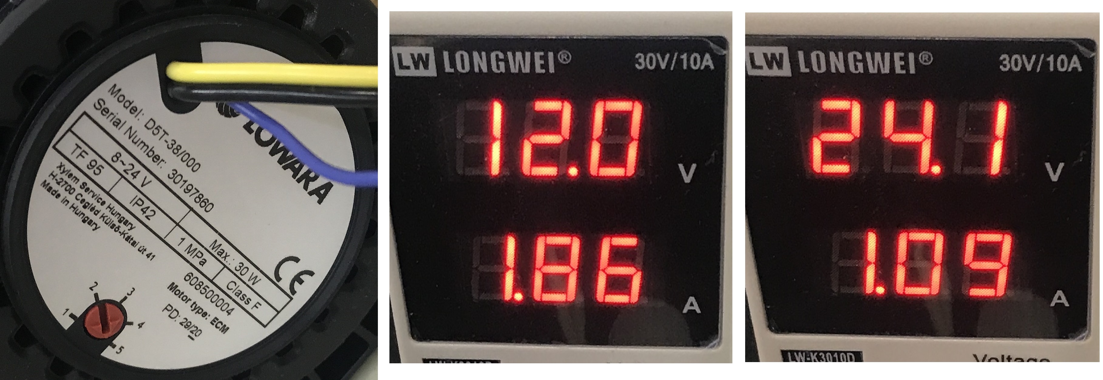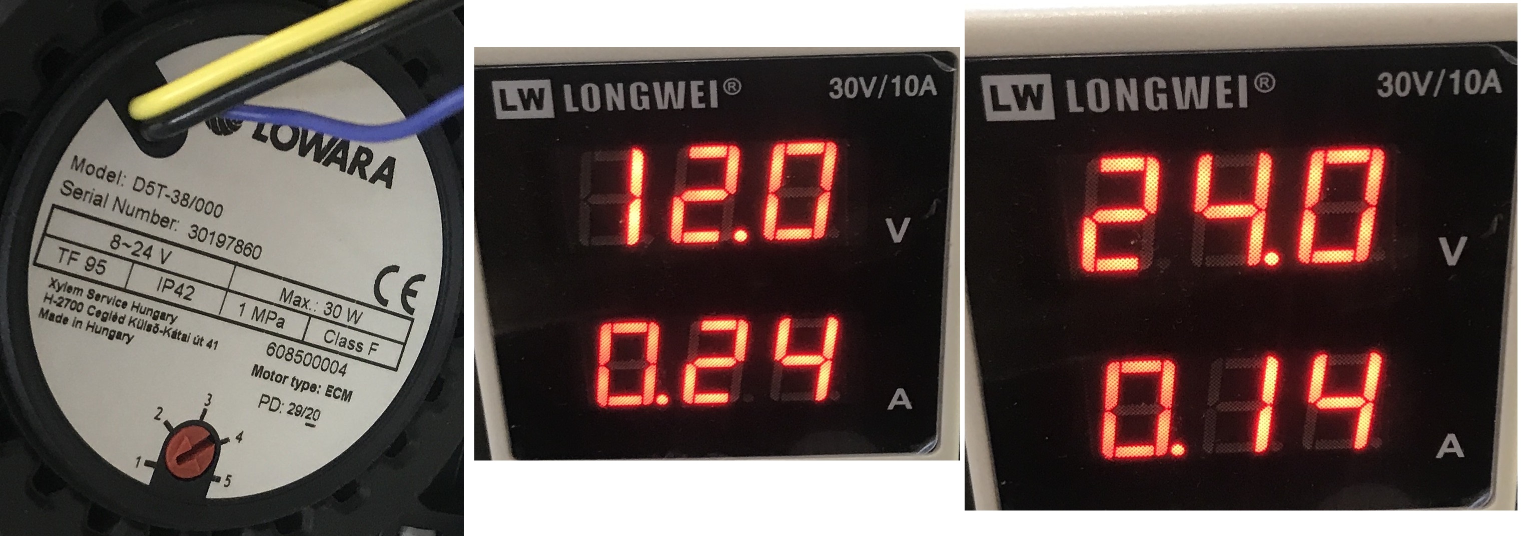 походу у меня помпа бракованная... 5 скорость 12в - 1.6А, 24в - 0.83А... А вот валающаяся "фризмод"(полнсотью пластиковая, чиненая, тут писал про неё) при 12в кушает 2.3А... и по ощущениям качает прилично больше! нужно будет прицепить её к материнке глянуть обороты.
