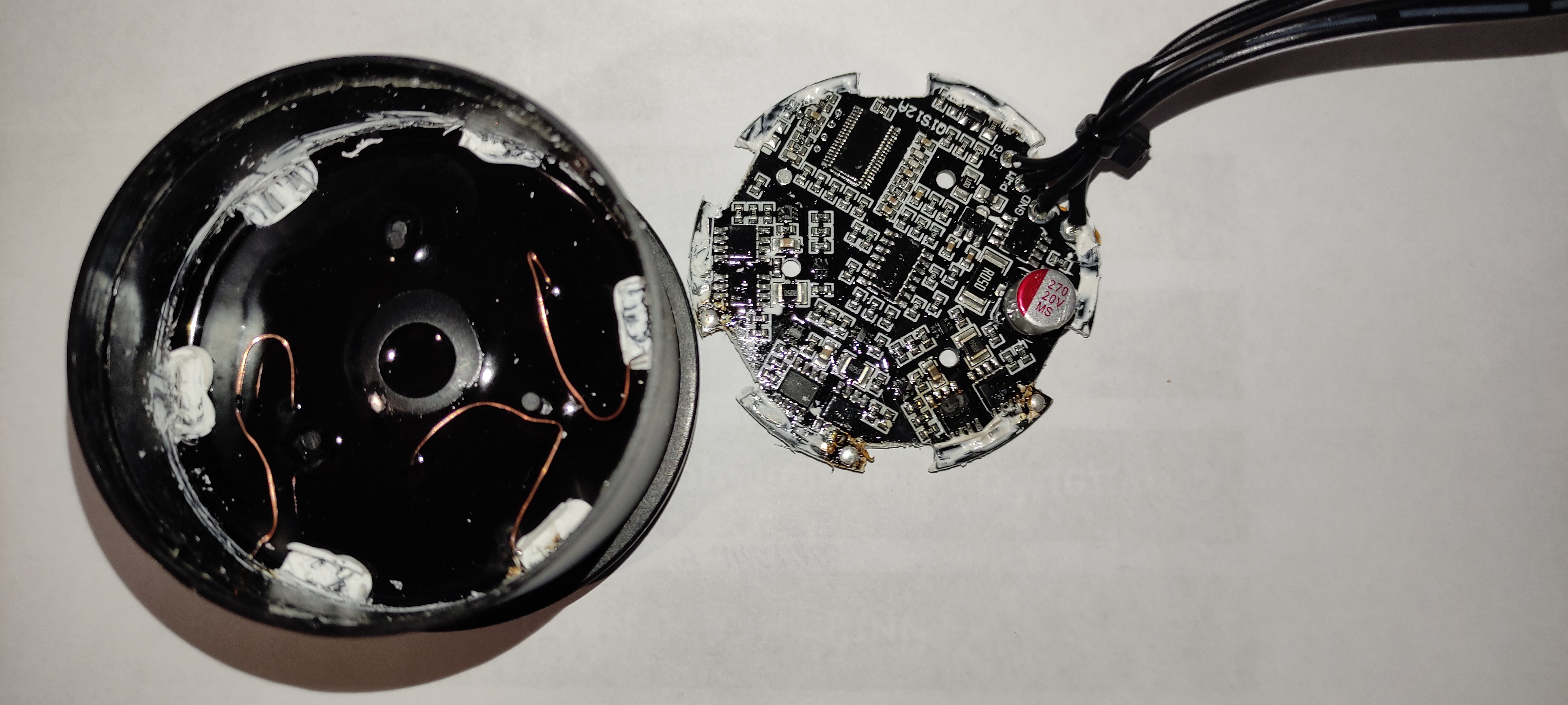 не - тоненький слой прозрачного "силикона" - снимается ватным тампоном, смоченным в изопропаноле. ЛЕГКО снимается. главное при разборке(после снятия буртика из силикона) - не сильно тянуть - кто знает, какой длины китайцы оставили выводы обмоток под платой...