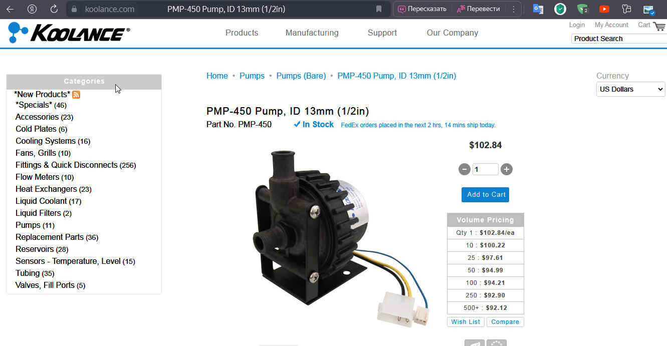 Однако вот сейчас перешёл на пендосский сайт Koolance и поглядел цену нату-же самую D5 Vario в лице Koolance PMP-450 Pump --- её стоимость как была 15 лет тому в зад 100 баксов такая-же сейчас и есть... Вот давеча покупал насос от Ватеркула, т.е. перебренд Laing D5 Vario --- мне насос обошелся в75 Эвро сам товар и 40Эвро пересыл, т.е. 115 Эвро(полная стоимость с пересылом)... Т.е., что я эти агрегаты покупал в 2009-ом году(а это примерно в эти года Водяные Конкретно взялись за 2 серии насосов от Laing --- DC & DCC), что сейчас --- цена примерно одинакова в валюте... Где вы видите подорожание в Десять раз загадка...
