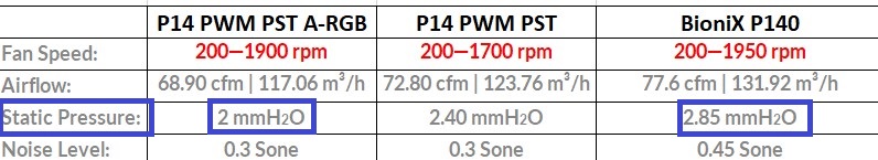 И смысл? Ну ладно ещё АРГБ. Они тише и подсветка есть. А бионикс то, тот же вентиль, просто на 200 оборотов быстрее крутится, соответственно и максимальные показатели повыше. А на 1000 оборотах обычный Р14 эффективней и тише этого бионикса. Но вы их вообще на 700 используете...