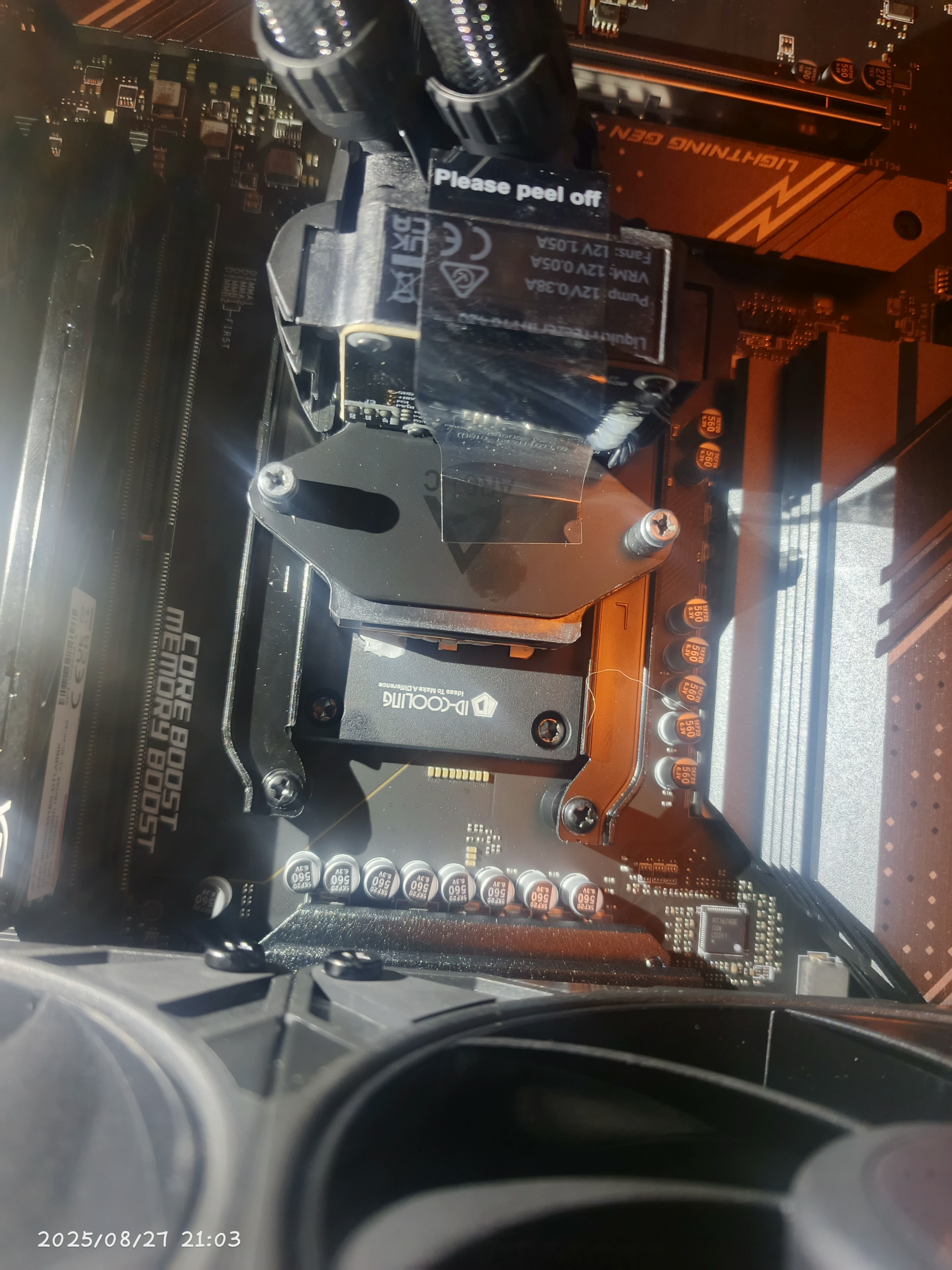 появились еще вопросы по установке этой СЖО на процессор с сокетом АМ5 Сначала я поставил комплектные рамки, которые идут справа и слева от сокета для прикручивания к ним водоблока и притягивания медной пластины к процессору, рёбрами вниз, т.к. мне показалось, что так медная пластина лучше стоит на процессоре и полность его закрывает. Но в таком положении болты прижатия просто н достают до этих рамок. Дальше я их перевернул рёбрами вверх, расположил в соответствии с буквами на них, справа и слева. Так блок притянулся, и вроде даже хорошо раздавил комплектную, дико густую термопасту (я откручивал проверять, т.к. думаю что нанёс слишком много, и наносилась она плохо) но в таком положении медная пластина не закрывает выступы процессора. Я что то делаю не так или всё нормально?