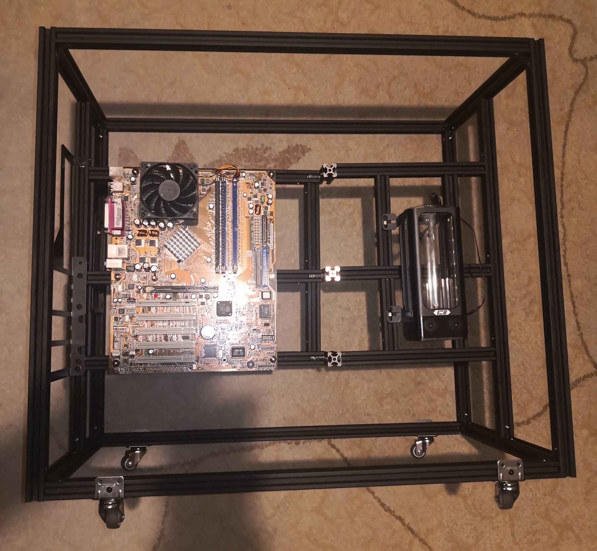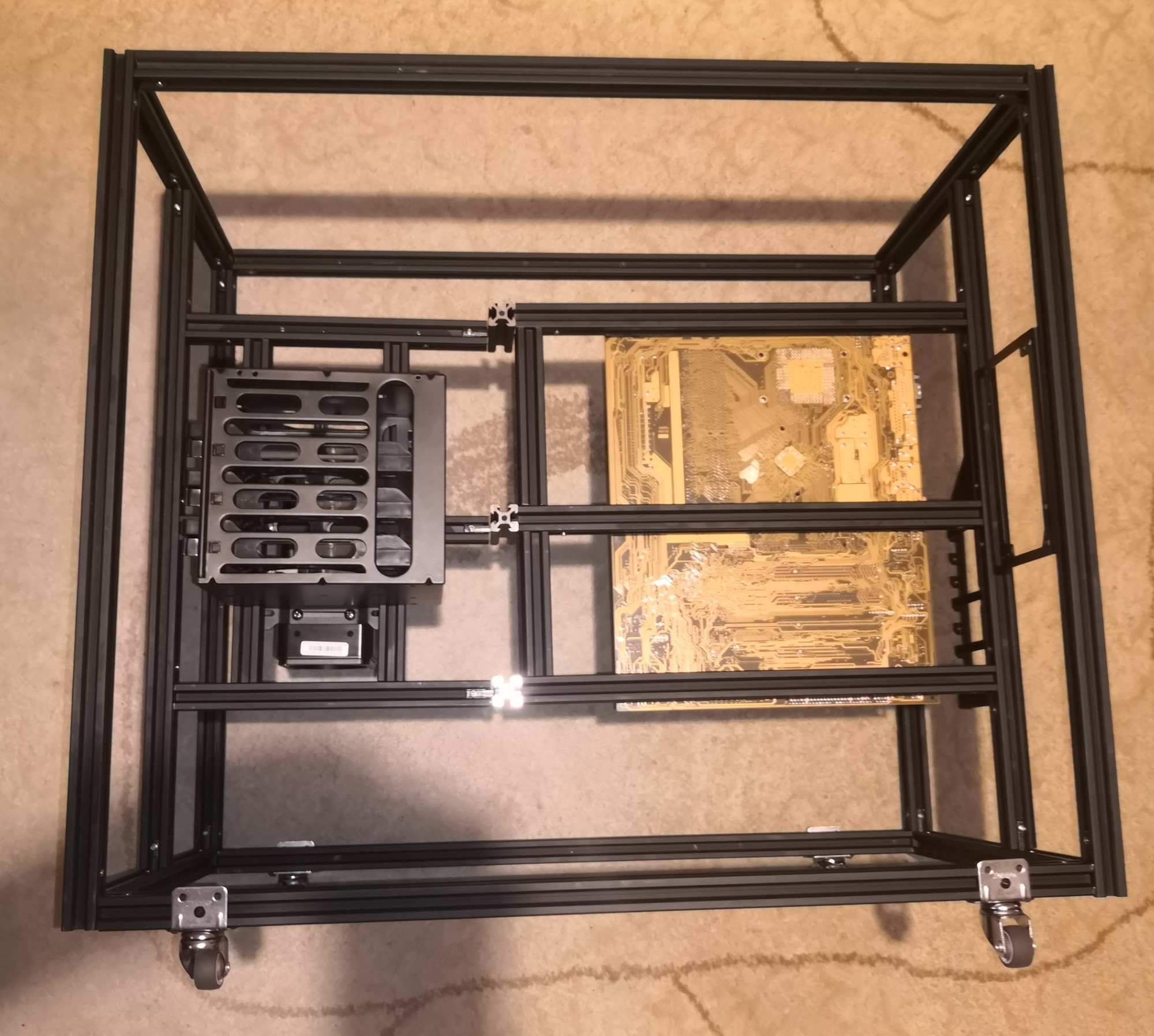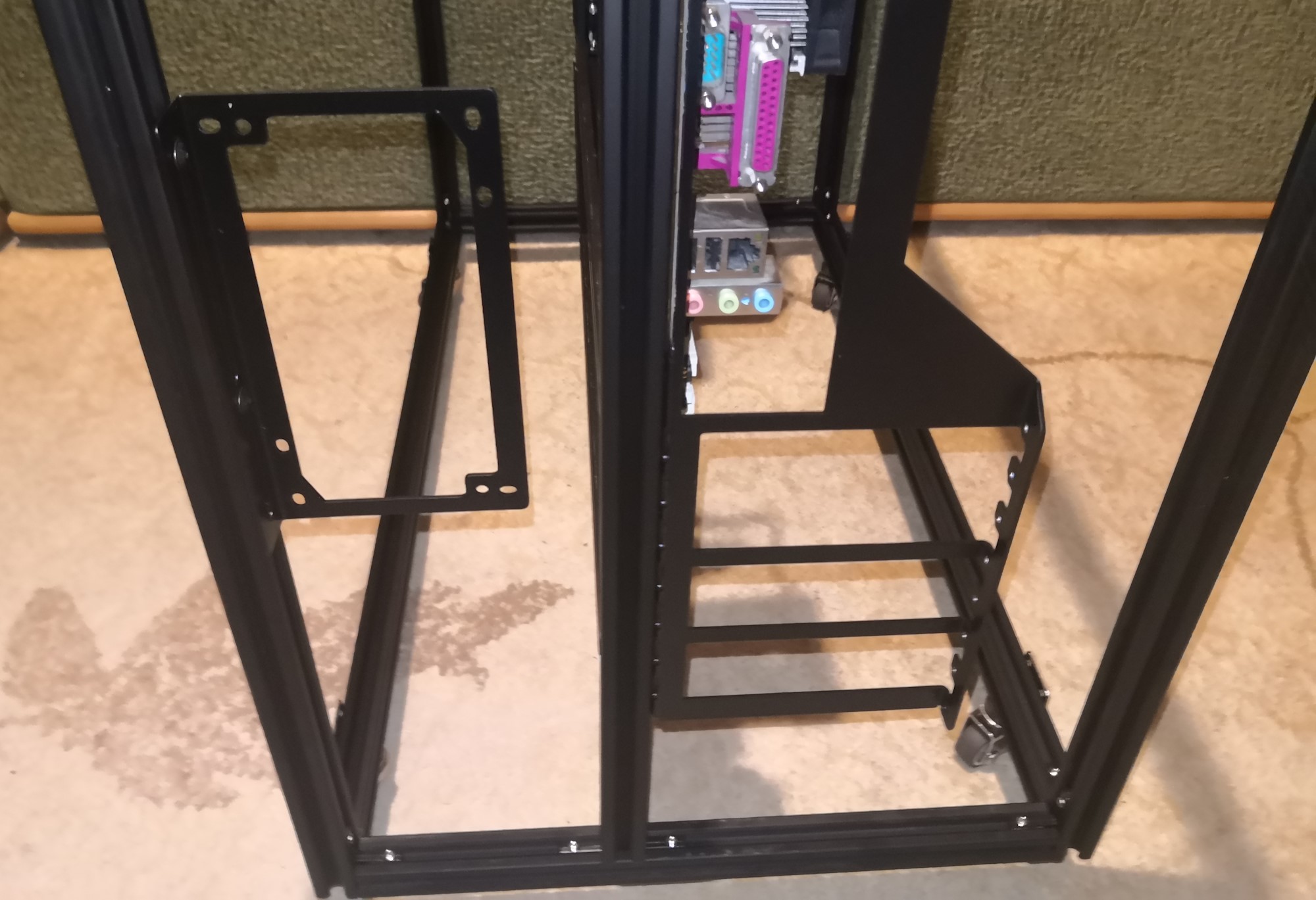 Ещё будут уголки алюминиевые установлены сверху и снизу материнки, в которых отверстия будут проделаны для установки проходных фитингов и протяжки кабелей.
