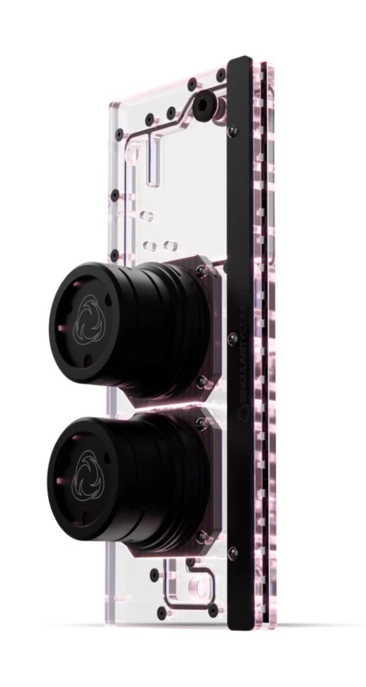 Смысл есть. На участке CPU + VRM + 2 x GPU давление неплохо так просаживает, далее идут 2 вертикальных радиатора 560 мм, которые змейкой гоняют воду вверх/вниз и вода возвращается в резервуар. Ещё мне надо избавиться от поворотных фитингов, они воздух подсасывыают в контур. Там неплохое такое сопротивление создаётся, так что, 2 помпы - в самый раз. Первая прокачивает ватеры, вторая - радиаторы.