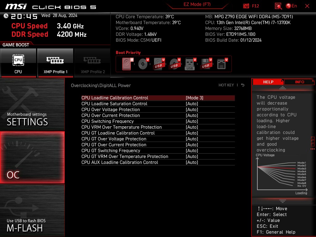 андервольт Оффсет -0.100 / Lite load 4 / Loadline 5