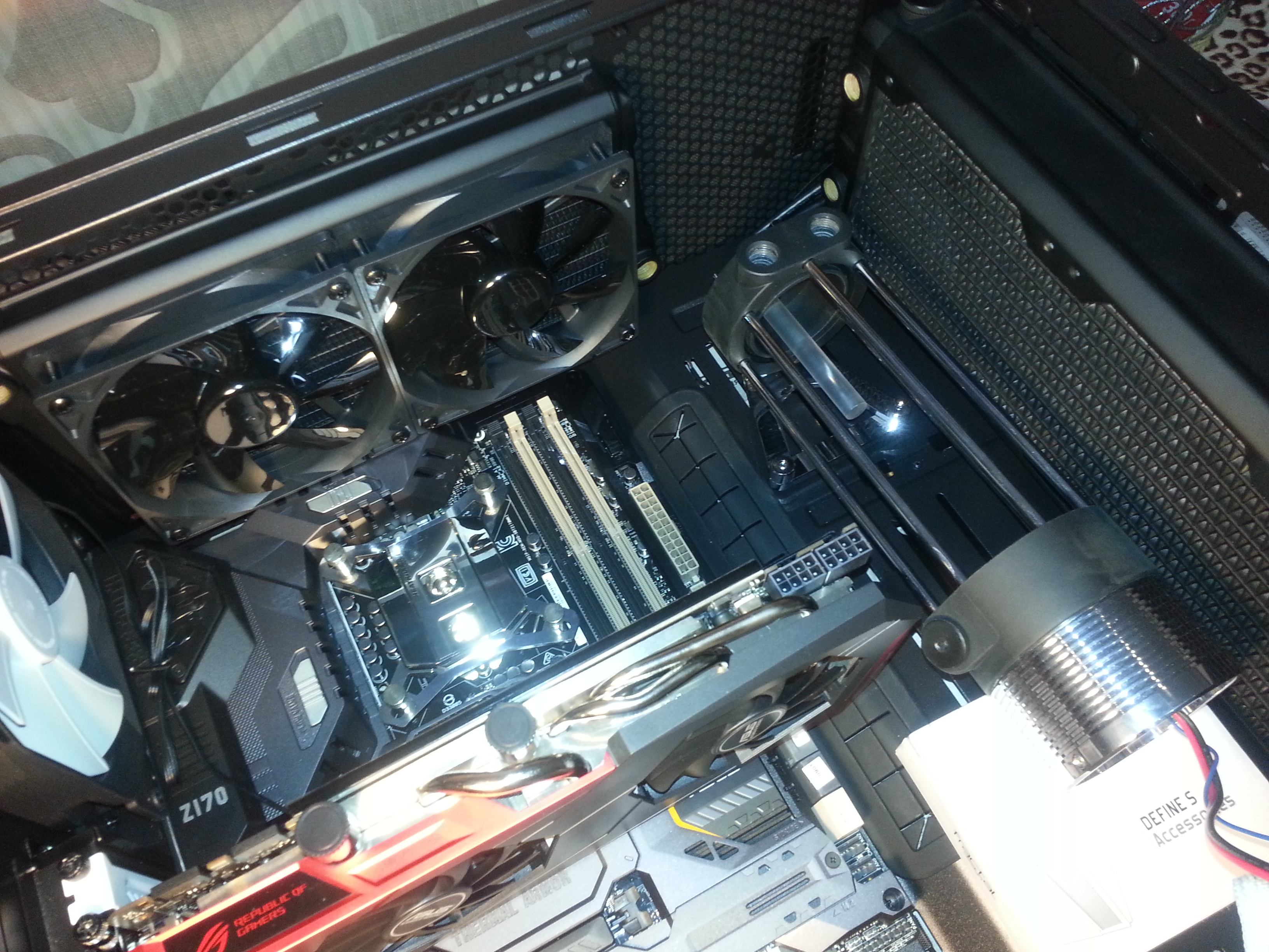 Жонглировать видимо придется) Дело в том, что штуцер видеокарты расположен по одной оси с водоблоком, фото которого мы обсуждаем. Удобно было бы сделать разводку именно в таком положении - с нижнего расположения выхода водоблока на условный вход карты. Если это момент критичен, придется менять планы. Хотя тут пишут, что ориентация Goofy (вход сверху) была эффективней для их 4930K. Но у меня будет i7-6700K http://www.xtremerigs.net/2015/04/22/wa ... -review/5/