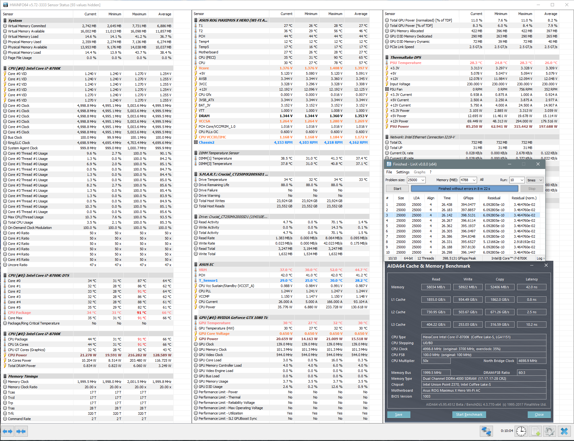 beavis81, кстати да. По поводу VRM хотел написать и забыл. С цельсиусом s36 температуры VRM на Hero X в простое были около 43-45, в линксе 0.8.0 с задачей 25000 на 10 проходов доходили до 78 градусов, а с M9H в простое: 32-34, в тесте: 54 максимум. Около 20 градусов выигрыш получился. И это все на 5Ггц 1,4v