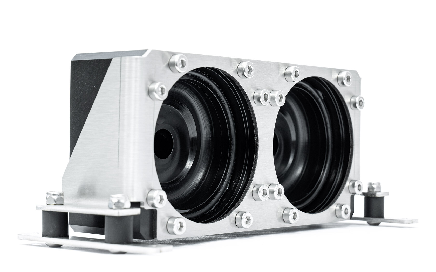 Как раз с таким расположением вышел самый минимальный колхоз, используются Watercool крепления, я лишь сделал по одному отверстию в креплениях для вентиляторов, чтобы расположение соотествовало виброразвязочным винтам от дуалтопа. Что мне не понравилось или чем я пожертвовал при этом апгрейде, так это положение входов / выходов у фитингов -> потерял более прямое/красивое расположение трубок. Я был ок с одним-двумя не 90 градусными изгибами в контуре, но сейчас таких изгибов уже 4, что естественно портит эстетическую составляющую.