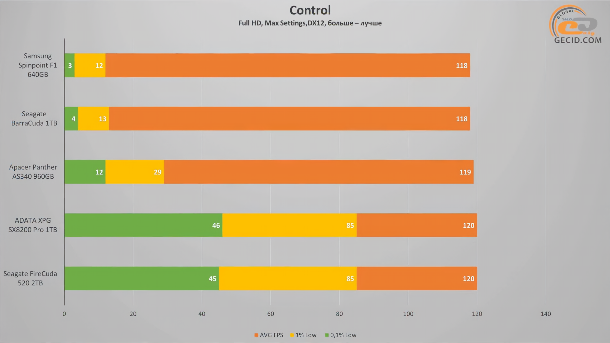 Первые два это HDD. Следом Apacer AS340 PANTHER на контроллере от флешки на 80,000 IOPs. Потом SX8200 Pro на бюджетном SM2262EN, но не с дохлыми 390,000 IOPS. Ну и FireCuda 520 на Phison E16 с 760,000 IOPS.