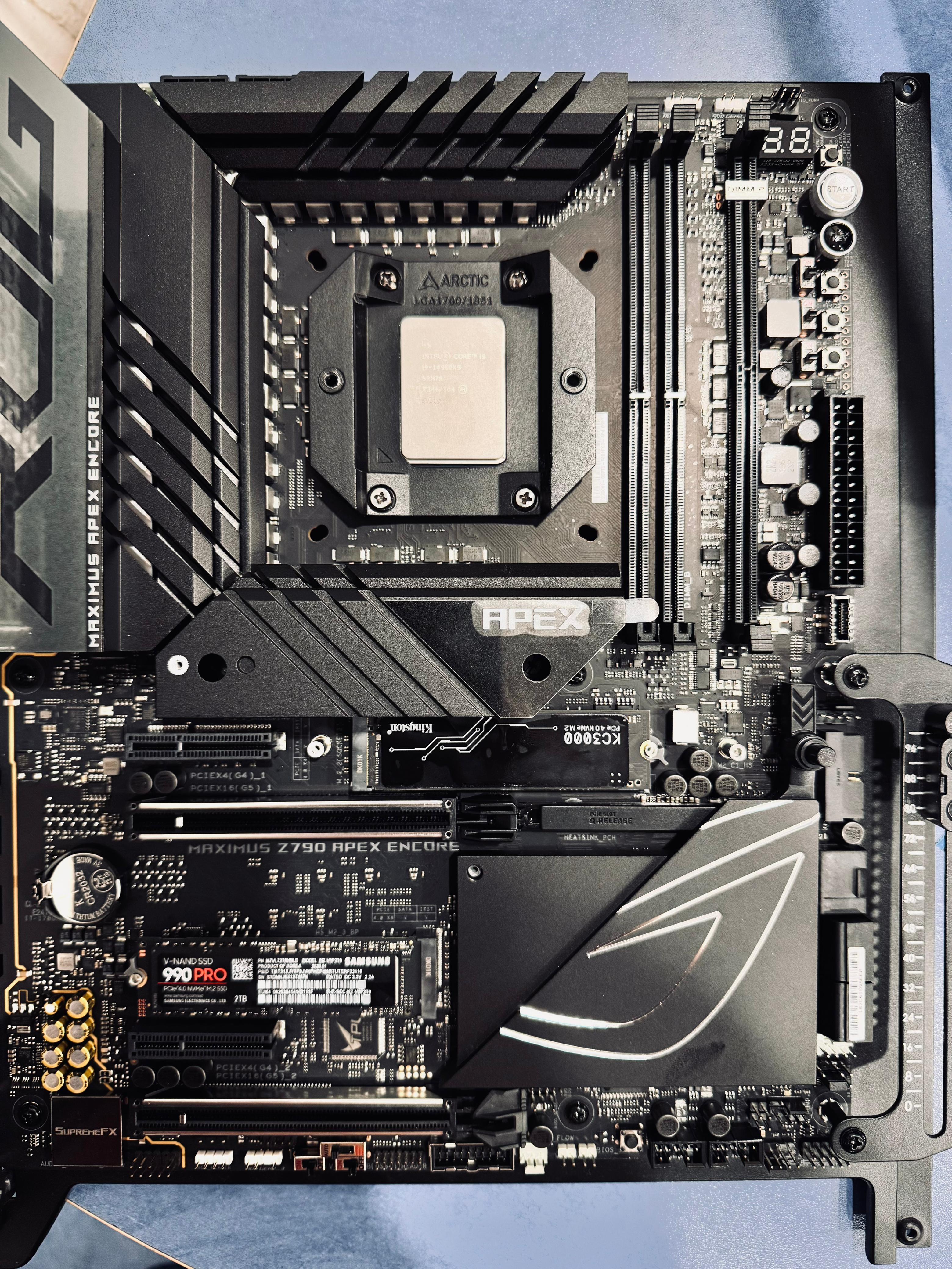 Биос на 129 микрокоде, дефолт через F5, настроил память и выставил лимиты по амперажу и ваттам, частота 5700. Windows остался на SSD с прошлой платы, HW info не ругается на какой-то датчик, завтрауже винду переставлю. Температуры вроде как такие же остались, а вот Vcore меньше стал, на MSI был 1.250, а тут 1.180