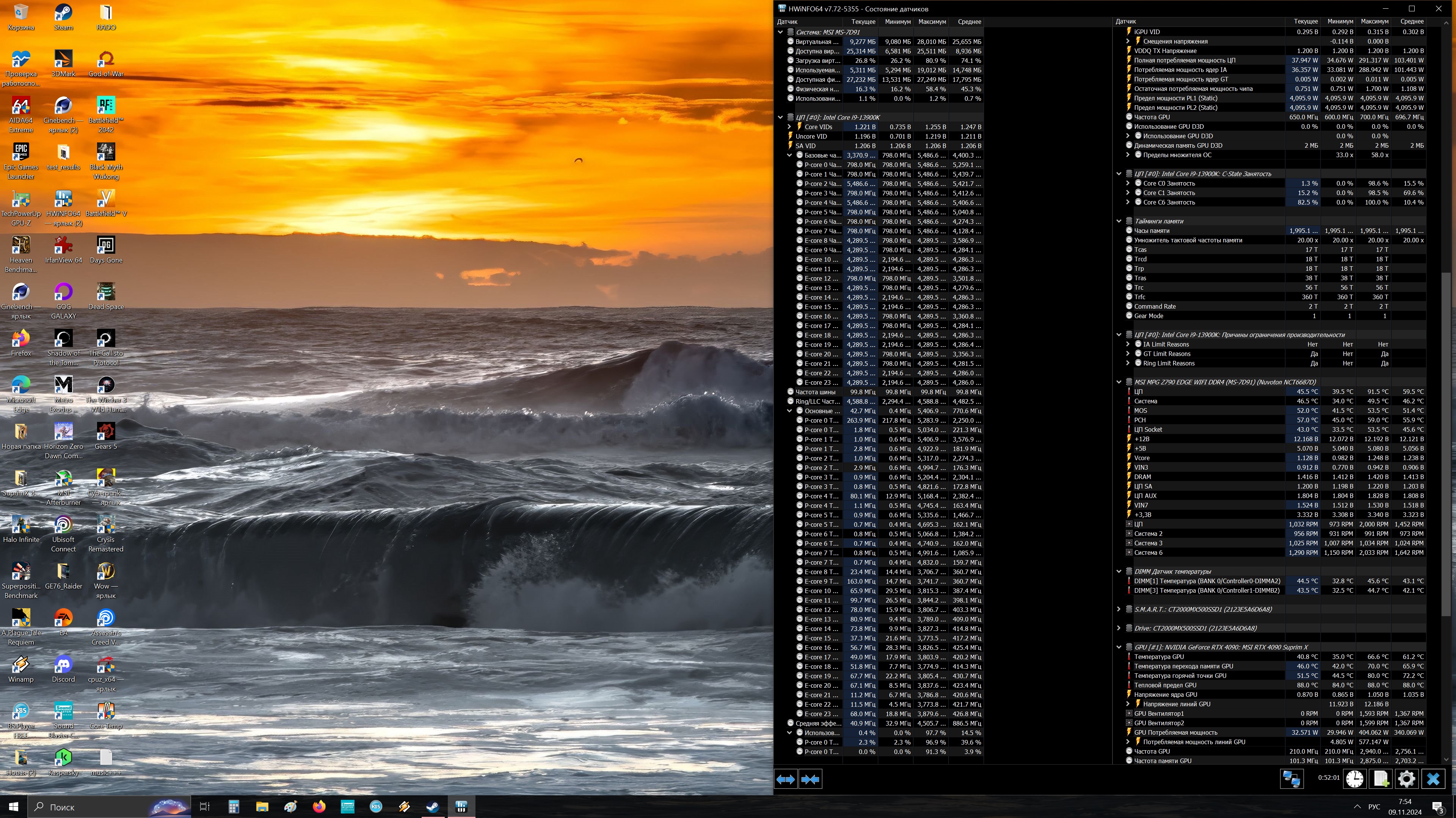 Вот, например, 14900. Тут температура между датчиками в ЦП и МП отличается на 14 градусов.