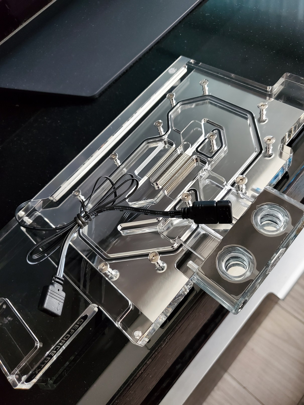 На водоблоке уже есть 4 отверстия и с ним делать ничего не надо. В бэке сверлится 4 отверстия и нарезается резьба под используемые винты. Затем к бэку прикручивается водоблок и винты подгоняются по длине так, чтобы они были заподлицо с внутренней поверхностью бэка. Всё - можно пользоваться. Всё просто, как 5 копеек.