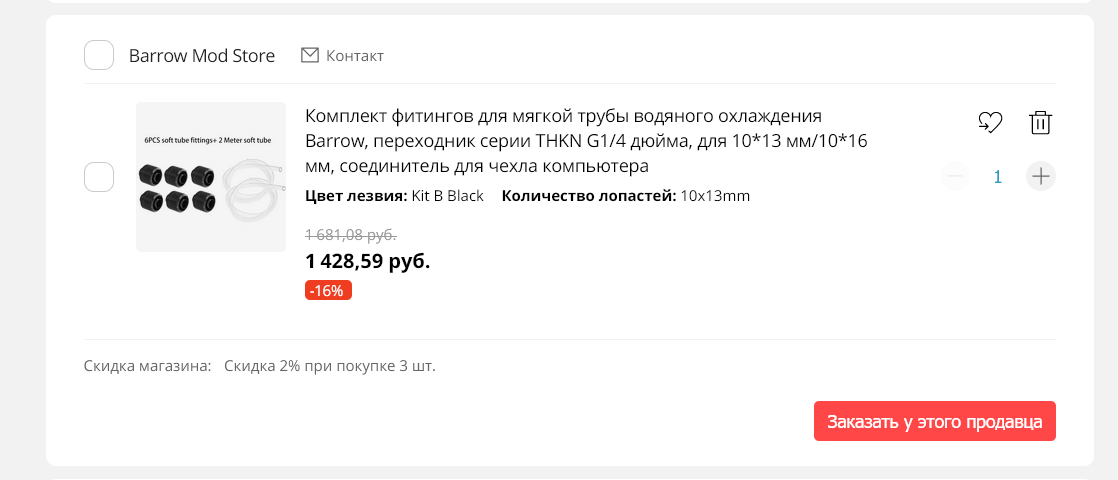 Помпа: Laing DDC 1T - 1 шт. или Laing D5 Vario, Топ для помпы: EK-DDC X-TOP V2 - Acetal G1/4 - 1 шт. или EK-D5 X-TOP - Acetal G1/4 Rev.2, Водоблок на проц: EK Supreme HF - 1 шт., Водоблок на видео: спросить в соответсвующей ветке, лучше fullcover, Радиатор: Coolgate Copper Radiator Triple120/60mm - 1 шт., Вентиляторы: Scythe Gentle Typhoon - 3 шт., Шланг: Primochill Pro LRT диаметром ID 10mm, OD 16mm - 3 метра (они же 10 футов), Соединения: фитинги Bitspower/EK/Koolance ID 10mm, OD 16mm - 8 шт., Жидкость: готовая жидкость от ЕК/Thermochill.