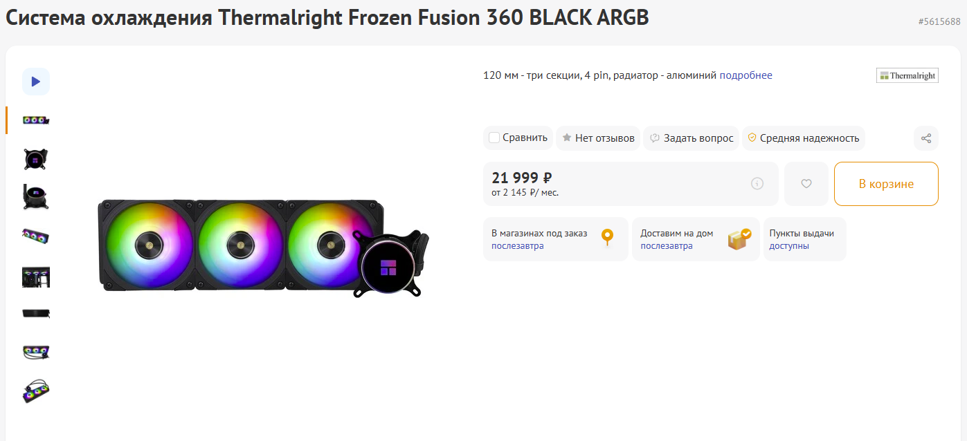 Всем привет, посоветуйте охлад для процессора, желательно что бы в днс в наличии был, процессор R7 7700 в будущем хочу 9800x3d охлад нужен с запасом небольшим под разгон лайтовый, сейчас вода стоит lian li galahad aio 360 uni fan sl120 уже 3 года но последние время слышу часто в ней бульканье воды, и как будто эффективность упала, вот я не знаю брать воздух или так же воду что то в районе 10-15к