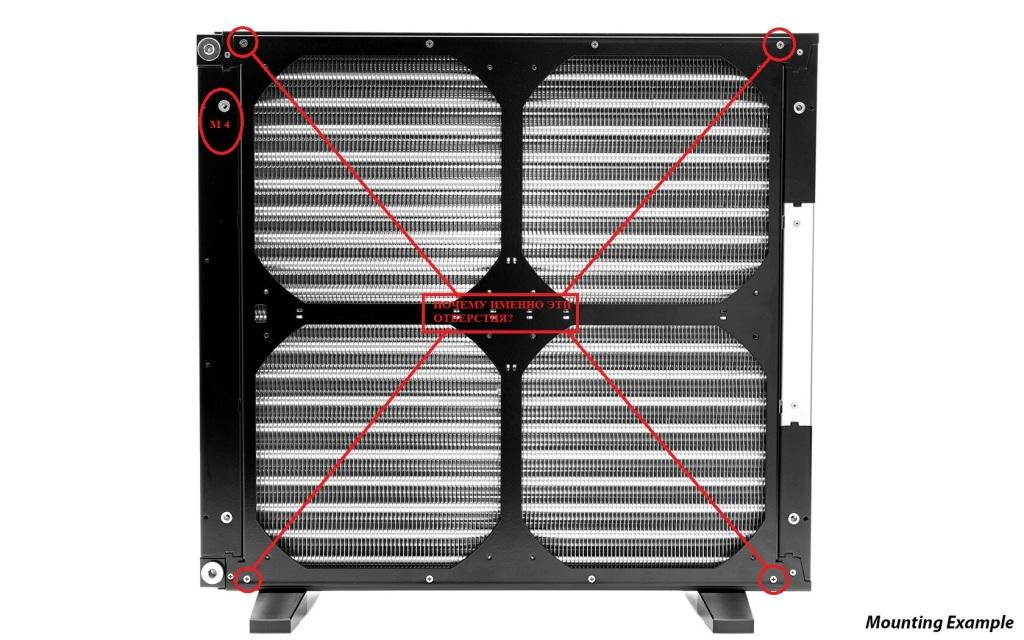 Мне крайне интересно, чем думают "женеры"(именно женеры, а не инженеры) из "ватеркула", когда проектируют что-либо. Например, гриль для "моры", а точнее, его крепление к радиатору. Ну, вот почему нельзя было воспользоваться боковыми отверстиями, в которые впрессованы втулки с уже имеющейся в них резьбой М4(по 4 таких с каждой из 2-х сторон радиатора).