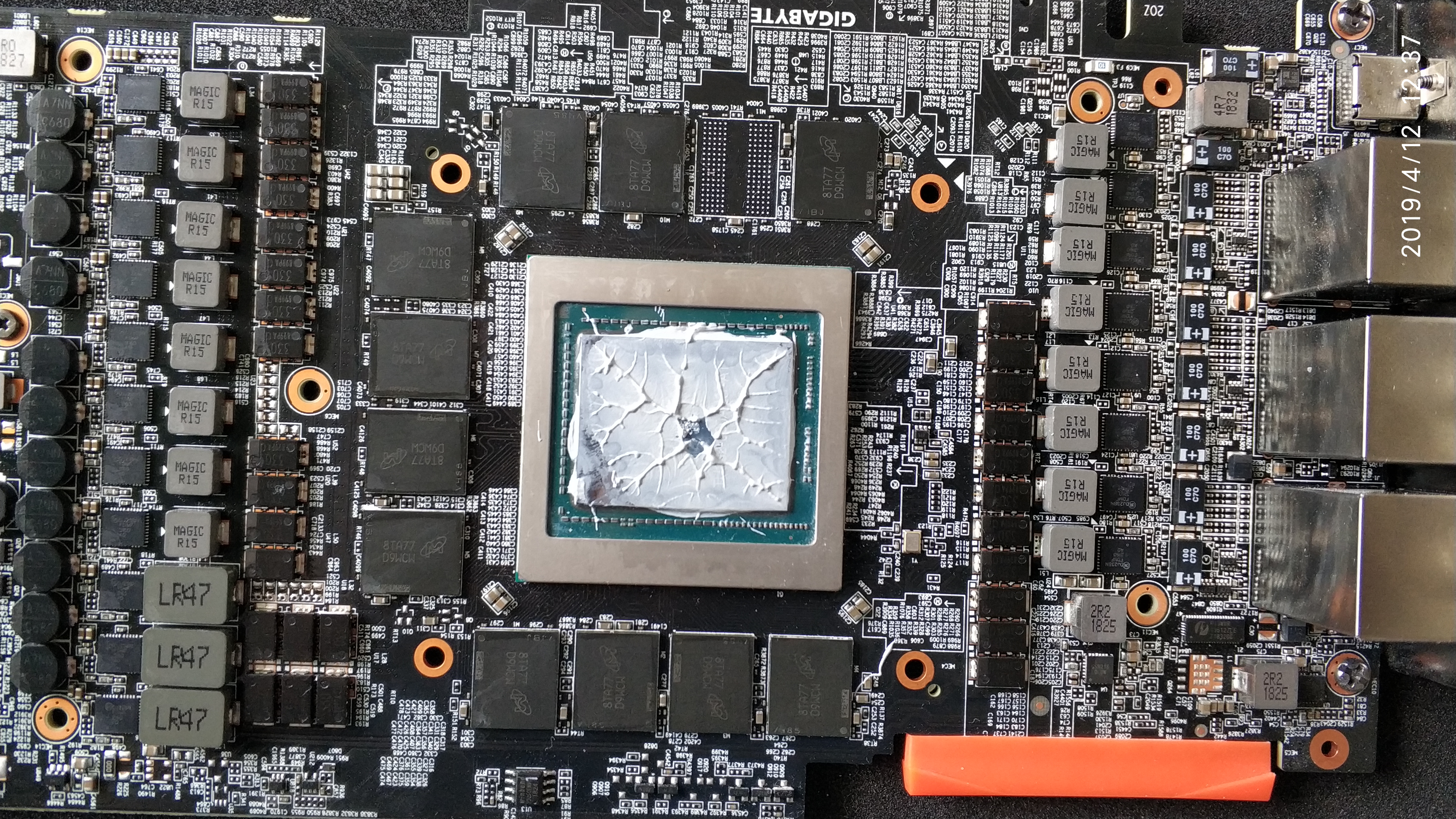 MaxBuger Кстати на прокладках которые контактируют с чипами памяти, не видно отпечатка самих чипов. Вполне возможно, что прокладки с питальников слишком толстые, и не дают хорошего контакта ни на память, ни на сам видео чип.