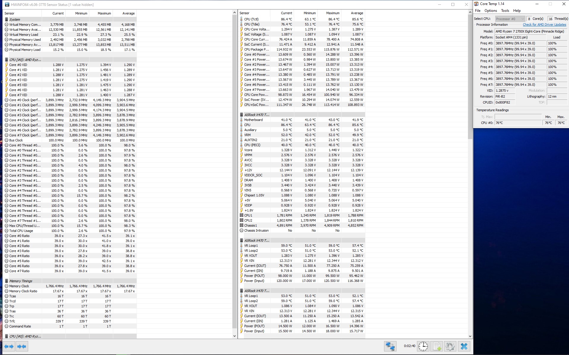 Так что вас смущает? Если по ядрам 62С. Процессоры с индексом "Х" имеют два температурных датчика - Tdie и Tctl. Первый датчик показывает текущую (истинную) температуру процессора, второй - температуру со смещением вверх на величину индекса. (Tctl = Tdie + Индекс) Индекс смещения температуры для процессора 2 поколения: 2700Х составляет 10°C (Tctl = Tdie + 10°C), у остальных процессоров нет смещения.