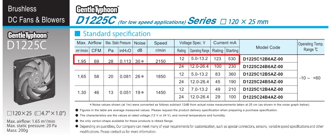 The FT12 pushes an impressive 79 CFM of max airflow at 4.2 mm H₂O static pressure, and under 30 dBA maximum noise. The FT14 has the same airflow but maximum noise of 24.9 dBA noise output, and a better 3.6 mm H₂O pressure.