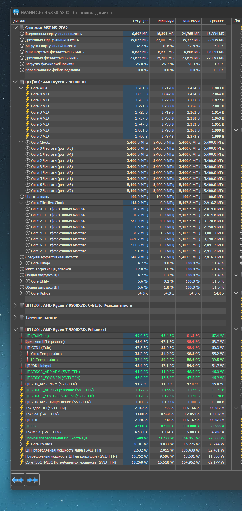 стало быть проблема с температурами и бустом так и не решилась? или просто надоело ковырятся? Понятно, что 90Вт это в киберпанке, но все-таки и близко не максимальное потребление. Чтобы понять вывозит ли охлад 9800х3д надо смотреть поведение на 130+Вт.