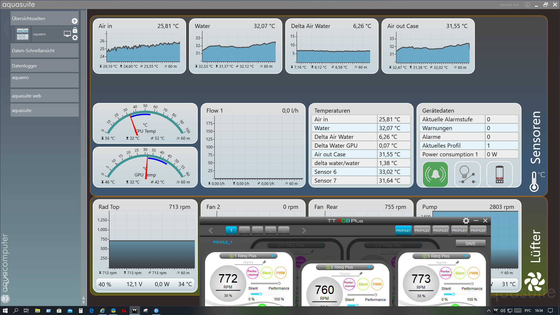 Есть наблюдение о котором недавно писал Syber: Aquaero - контроллер управления воздушных и водяных СО от компании Aquacomputers #16680141 Полагаю у меня примерно то же самое т.к. наблюдаются те же симптомы (постепенное снижение с одних показаний в момент сборки до более низких сейчас). Возможно такое поведение датчика и его Automatic zero flow calibration наблюдается не у всех.