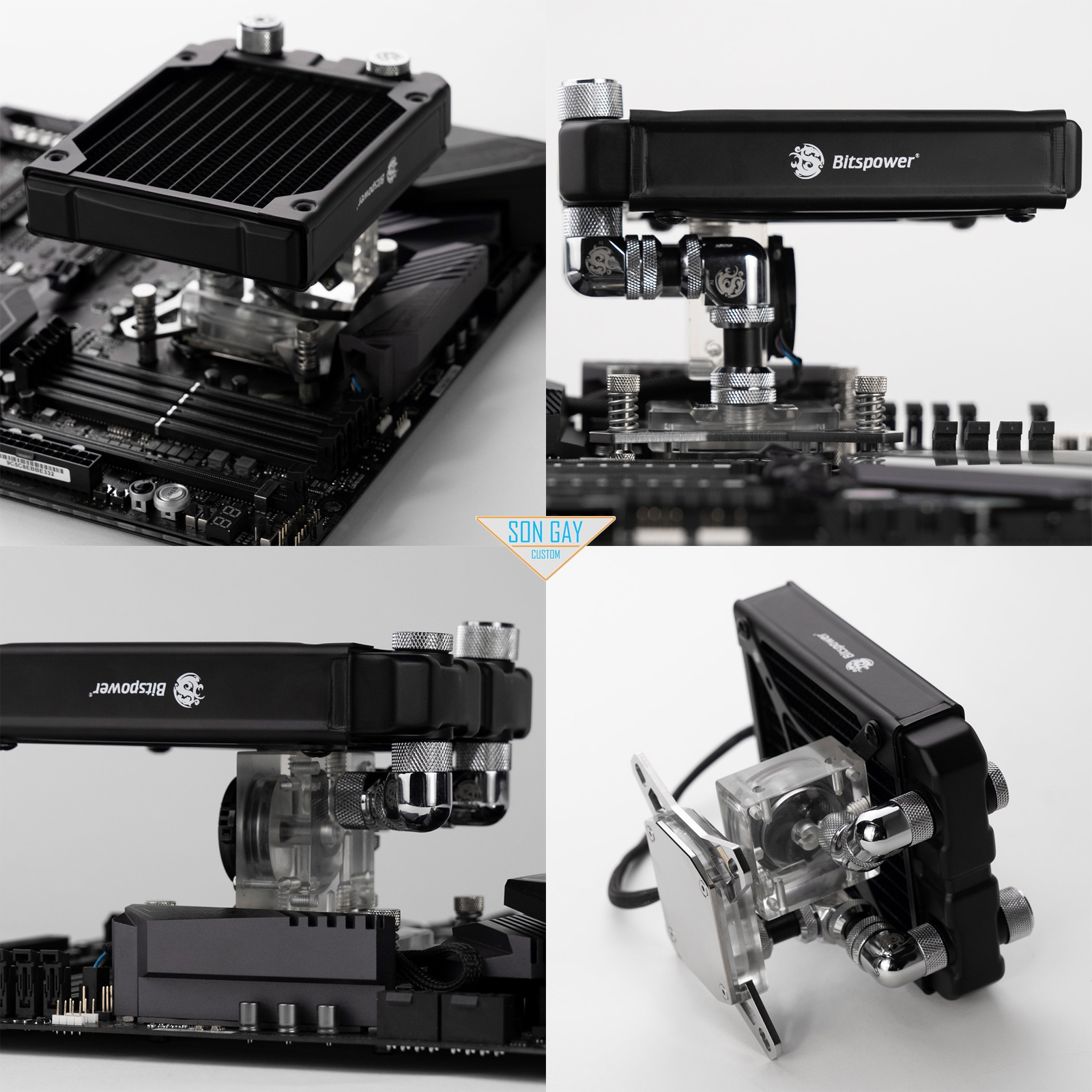 Такое серийно делал (емнип) Dell в серверах (которые в обычных корпусах, не стоечных), только радиаторы примерно на 60 или 80мм был (по одному на проц), у корсара есть aio с турбиной (как на видяхах) с плоским радиатором над cpu и выдувом вбок. Такое лепить выгодно, если есть выдув сразу наружу корпуса в этом месте и нет особых требований к тишине (ну или cpu холодный). Но вообще изврат и не предусмотрено расширения жидкости от нагрева. Название сборки соответствует содержимому