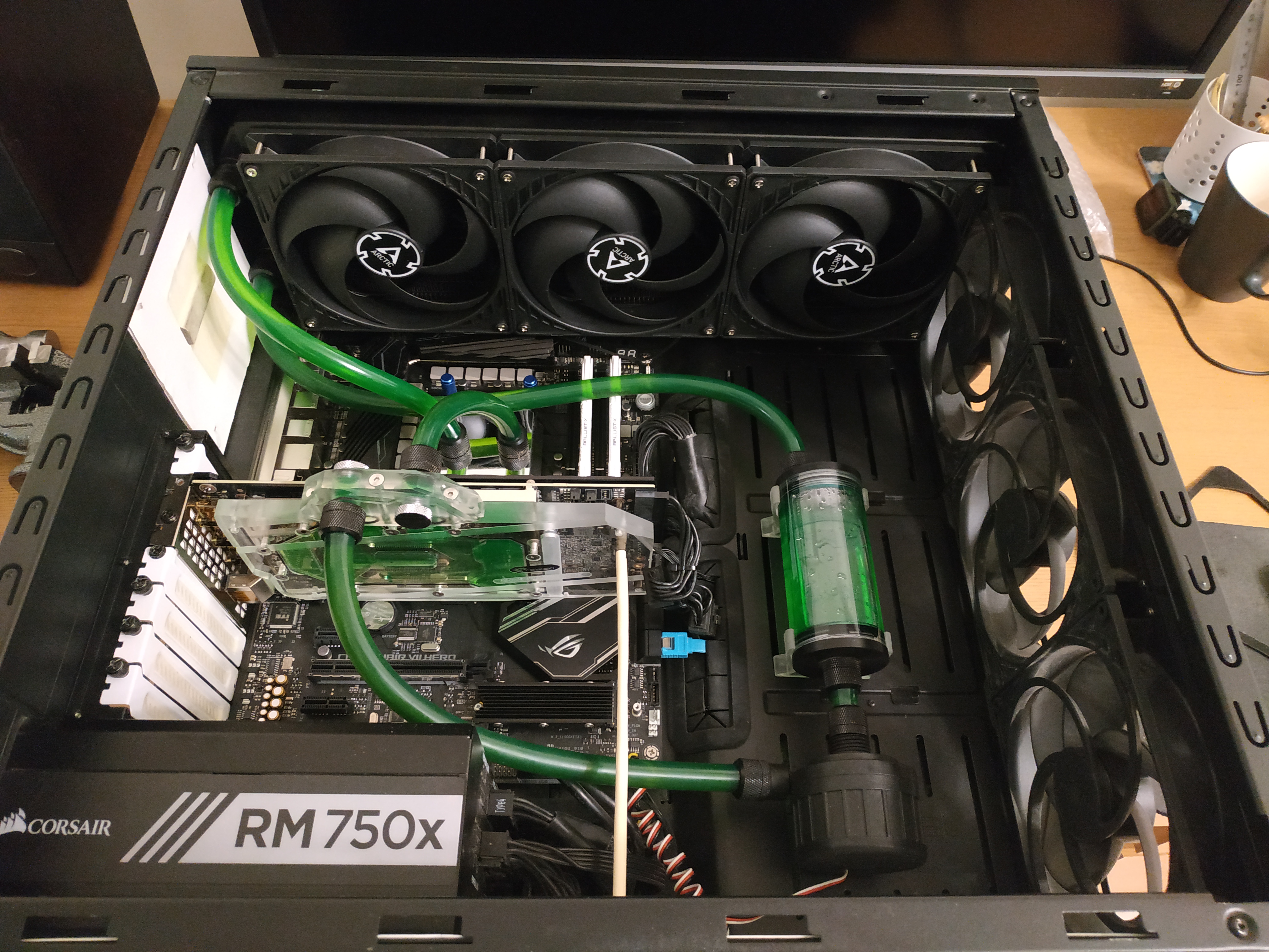 Благодарю за ответ! Внешний радиатор не вариант - дети и кот не оценят ) Да и для одной карты 3090 мне кажется большого радиатора вполне хватит - он рассеивает 300+ ватт, столько же насколько помню выделяет карты