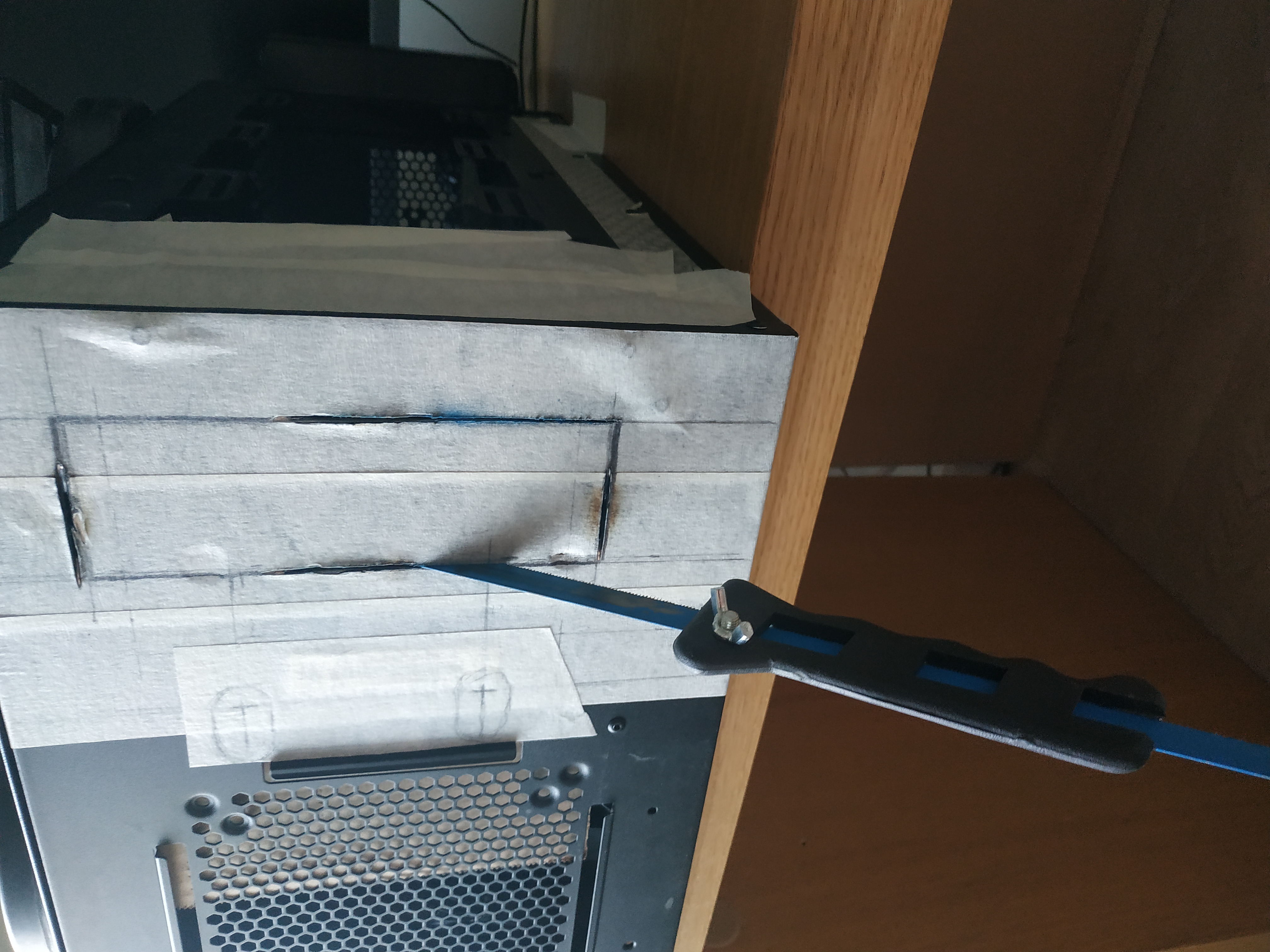 На прежнее место сверху вставать отказался, уперся в выступ корпуса под выходы материнки. Так что реализовал план "Б" по напилингу морды, куда производитель вообще не декларировал установку 420х радов. Итак fractal design define S front 420 mod
