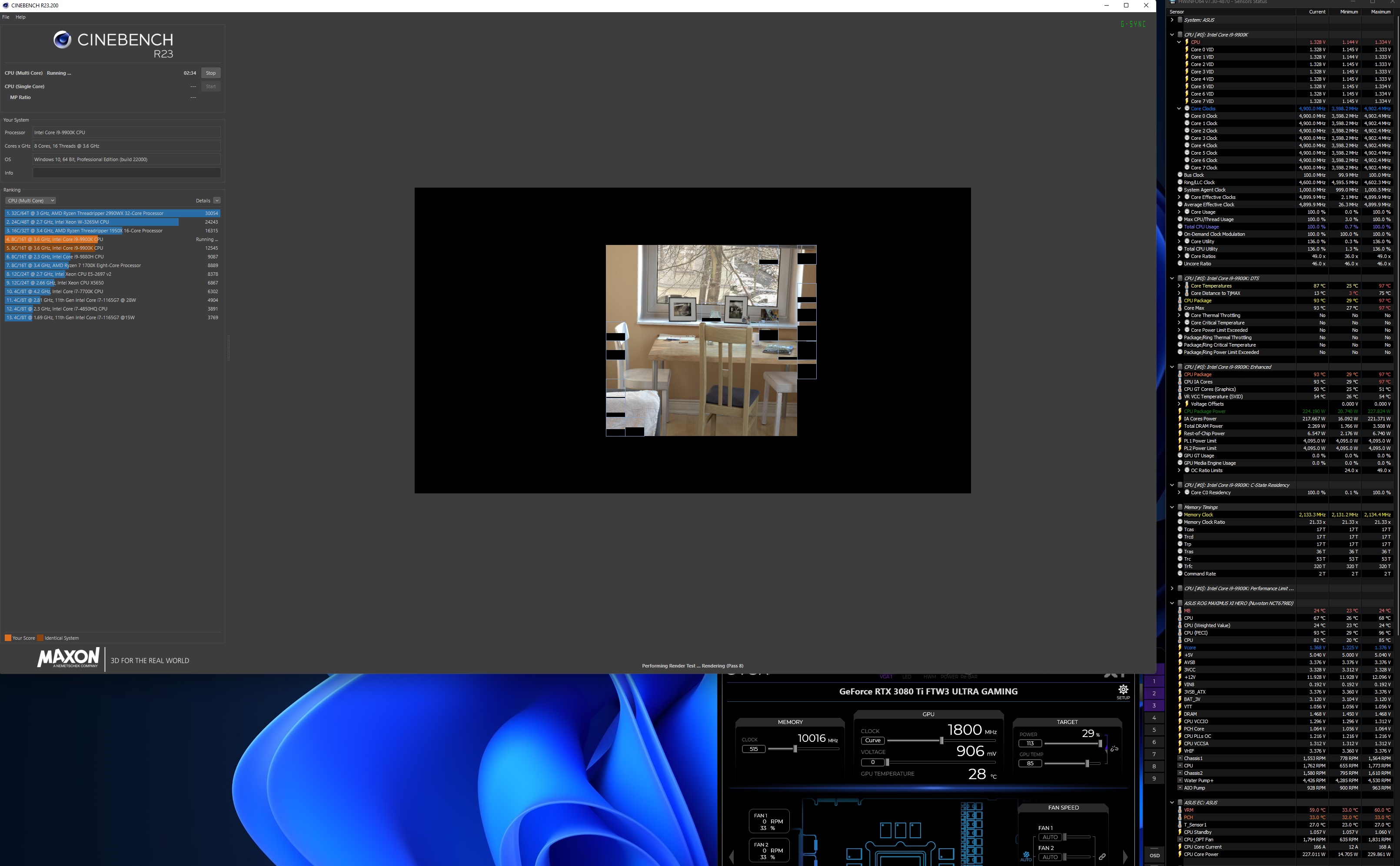 Cinebench R23 8 минут. 4.9GHz. +0.09v offset; LLC - 7. Воздух 21. Vcore максимум 1,33v в пике. Энергопотребление - 228W. Температура - 97. Неадекватность полнейшая