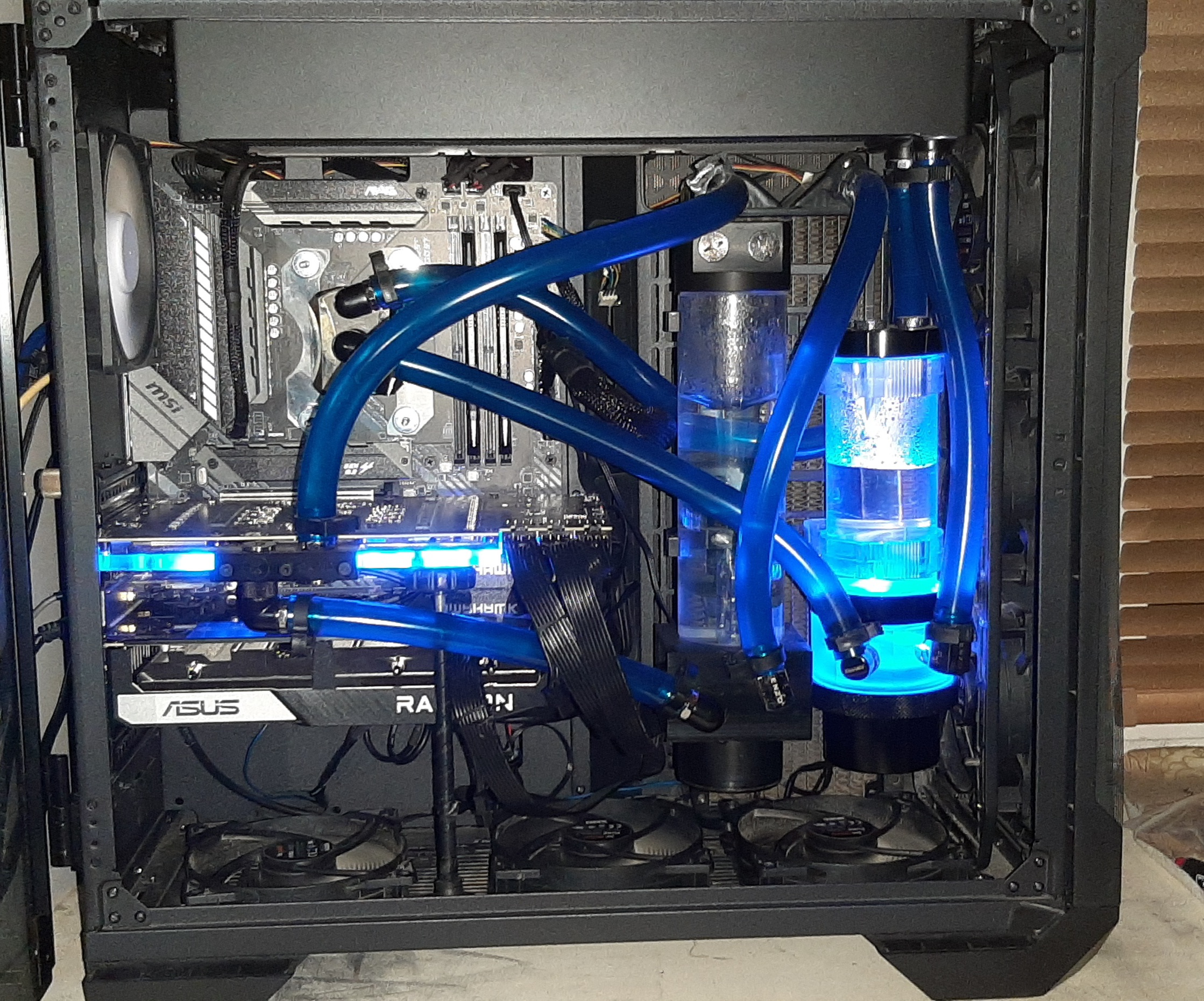 Обычные корпуса с опциональной переделкой/доделкой для внутренней установки радиаторов. Чаще всего выбираются по критерию, радиаторов какой площади позволяют установить внутри без/с разумным количеством доделки/модинга, посему главным образом - большущие full tower. Плюсы/минусы обычных корпусов| Популярные выборы | Приметки (+) при внутренней установки радиаторов общие размеры более компактны; (+) доделывая прямыми руками хороший внешний вид; (-) сильные ограничения по максимальной площади устанавливаемых радиаторов; (-) зачастую нужда доработки (и соответственно инструментов, навыков работы, дополнительных деталей (радгриллей/пылевых фильтров/установочных причиндал и т.д.), часто увеличивающих общие траты до или выше уровня цены идущих следующими специальных корпусов под воду) Популярные выборы: Silverstone TJ07(штатно внизу 4х120(+2x120 если с обеих сторон). Вариант TJ11 с похожей компоновкой имхо хуже, ибо неоправданно дороже. Позволяет похоже установку 4х140 рада); Corsair Obsidian 700/800D(штатно 3х120 на верху, 1х120 с сзади, 1х140 с низу. С минимумом переделок 4х120 на верху.); CM HAF932(Advanced, если с черным нутром. Предпочтительнее HAFX 942ого (у которого меньше места между верхом корпуса и материнской платой. Мало знаком с корпусом, какие/сколько радиков влезают, дополните инфой); CM 692 II(два 2х120, один на верху, другой в низу); CM Cosmos (1000/Pure/S/II)(мало знаком); Silverstone Fortress 02(с разумным количеством доработки 4х140 или 3х180 (если задумано пользование штатных 180мм крутиляторов) радик внизу (правда может лимитировать максимальную длину видеокарт). 1х120 на верху не ставил бы, толку мало от охлаждения его пренагретым от нижнего рада воздухом); +Разные корпуса из больших от Lian-Li и некоторые другие от Corsair & Fractal Design. Приметки к обычным корпусам: При покупке/доделке обычных корпусов желательно иметь инструменты для модинга, как то дремель для выпиления дополнительных вентиляторных отверстий для радов побольше, ну и сверла для установочных винтовых дырок. +Пластиночные или проволочные радгрилли(решётки) для установки поверх вырезанного. Про возможности установки СВО в конкретных корпусах советую смотреть/искать темы в етом и етом форумах или в секции ворклогов на XtremeSystems, и гуглить, гуглить, гуглить, да бы меньше изобретать велосипед.
